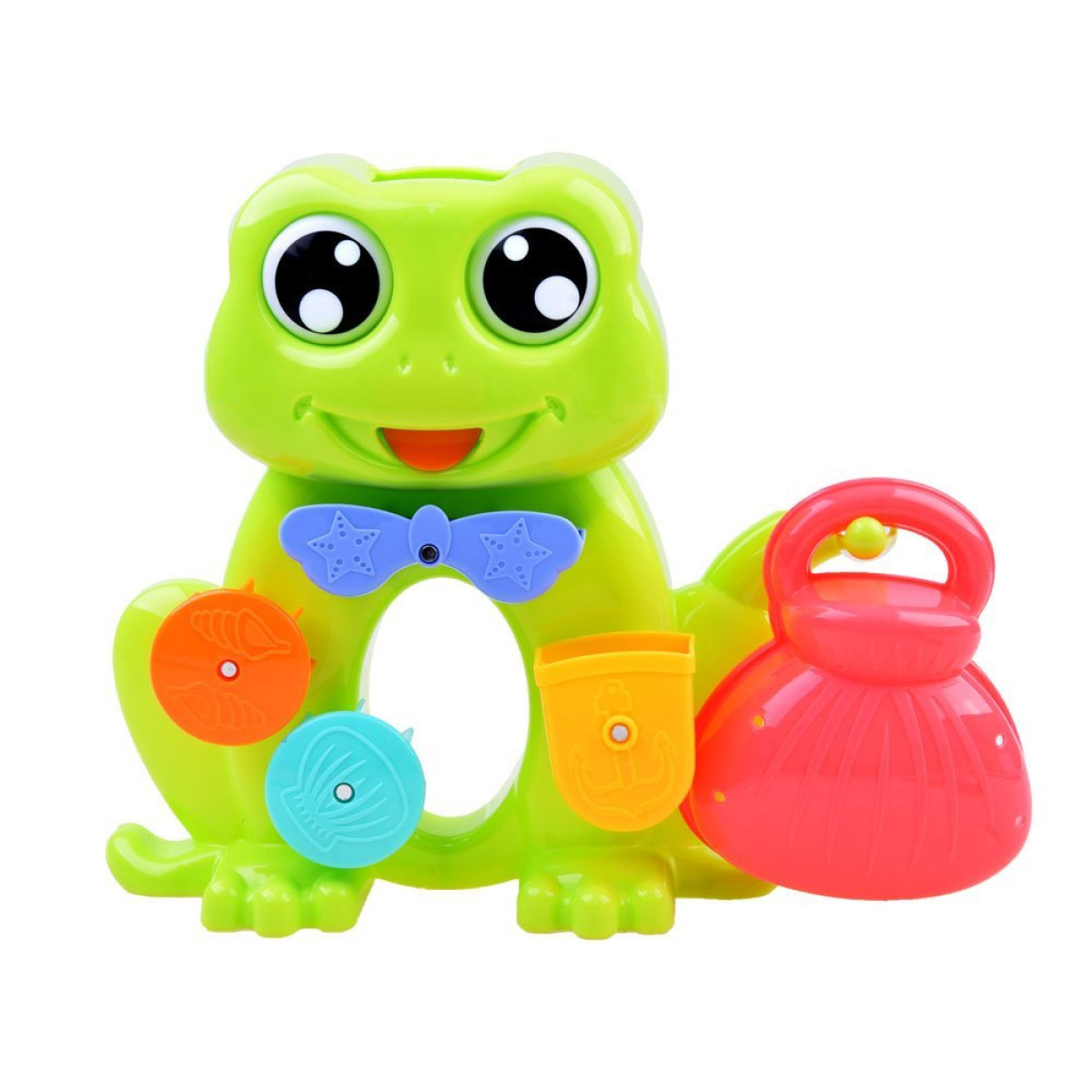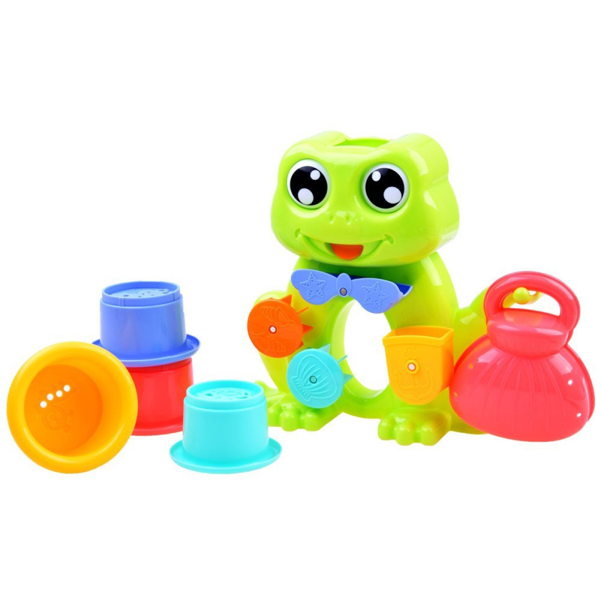 Pielejot ūdeni vardītes galvā, sākas jautra kaskādes ceļojums pa ratiņiem, kas atrodas uz vardītes. Ūdens plūst no augšas uz leju, griežot ratiņus ap savu asi. Bērns var izmantot krāsainās krūzītes, lai pārliet ūdeni, veidotu piramīdu, vai vienkārši ļautu tām plūst pa ūdeni. Rotaļlieta ir izgatavota no plastmasas, un tās košās krāsas padarīs ikdienas vakara peldi aizraujošu.