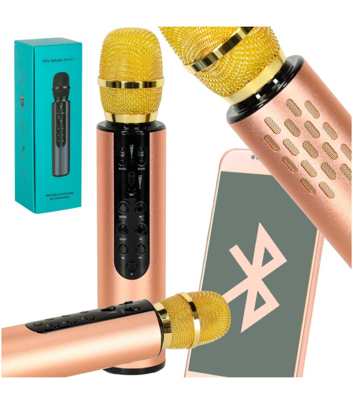 Pārtver karaoke izklaidi ar zelta bezvadu mikrofonu! Ierīce apvieno daudzas funkcijas, ērtu lietošanu un stilīgu dizainu, padarot katru ballīti neaizmirstamu.