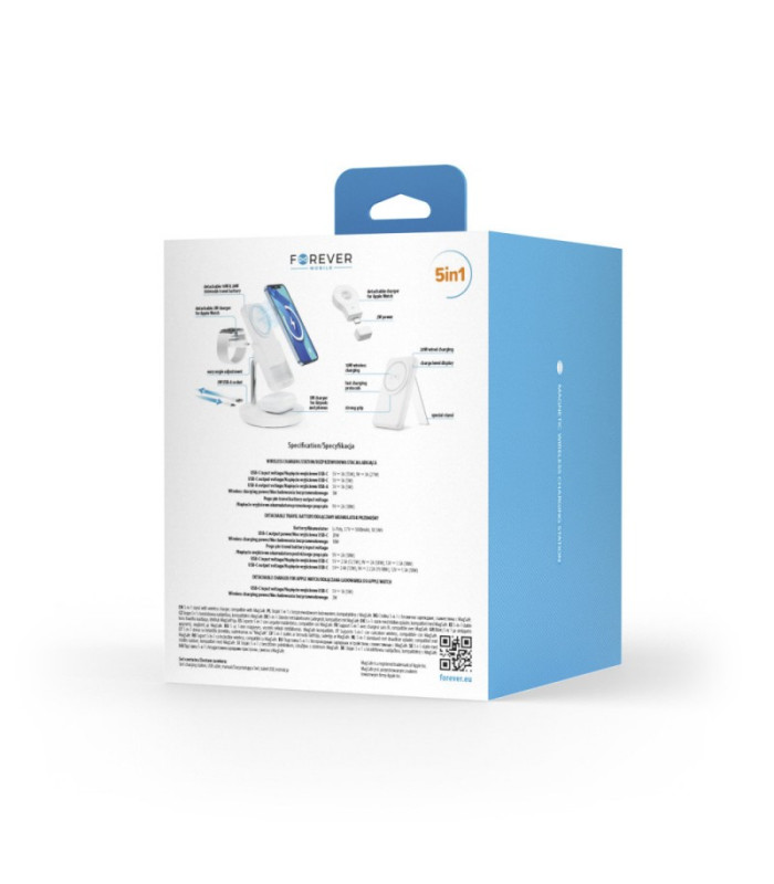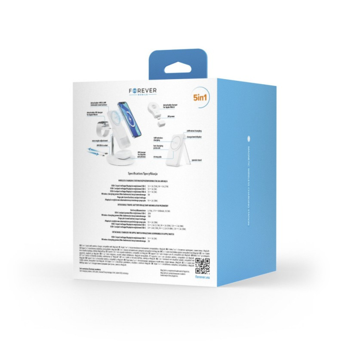 "Forever" MACS-100 magnetic wireless charging station with power bank baltos spalvos 5in1