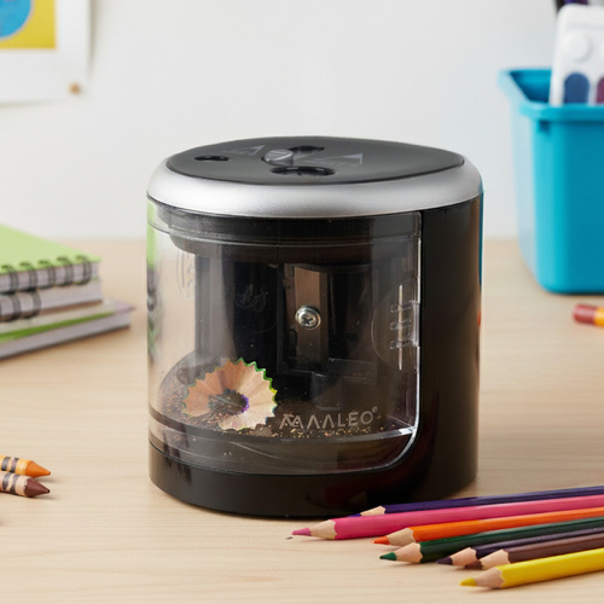 Dvigubas automatinis elektrinis galąstuvas su 2 skylutėmis ir keičiamais ašmenimis MAALEO - nepakeičiamas prietaisas mokyklai, namams ir biurui!