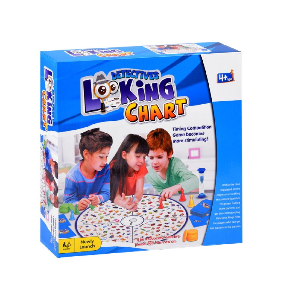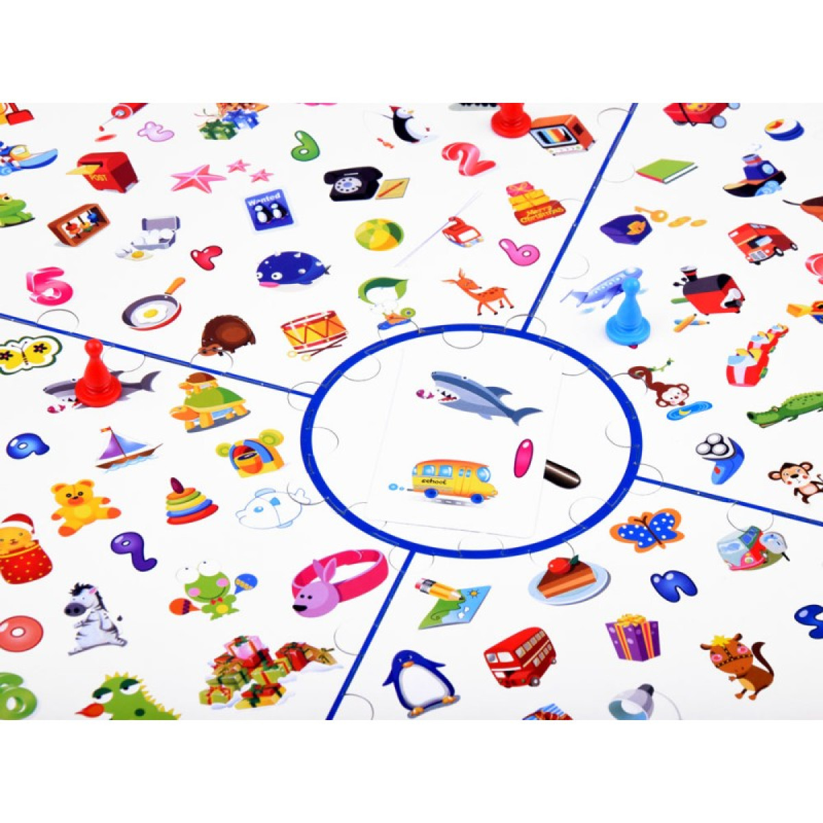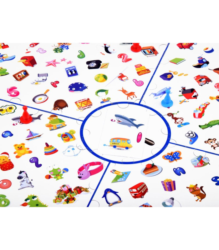 Jaudinantis, socialinis žaidimas jauniems ir seniems, kuriame užduotis yra rasti tinkamą paveikslėlį lentoje. Bet būkite atsargūs! Yra daug nuotraukų, o jūsų konkurentai gali turėti ryškesnę akį! Kontroliuokite savo nervus ir tapkite paieškos meistru. Žaidimas, kupinas emocijų, su konkurencijos užuomina. Puikiai tinka leisti laiką su šeima ir susitikti su draugais. Komplekte: 5 elementų plokštė; 60 žetonų; 12 pėstininkų- žymeklių; 60 kortelių; smėlio laikrodis. Žaidimas skirtas 2-4 žaidėjams; Amžius: 4+. Žaidimo taisyklės: Pirmiausia padėkite lentą centrinėje žaidimo zonos dalyje. Kitas žingsnis yra padalinti kortas tarp žaidėjų. Kortų skaičius priklauso nuo žaidėjų skaičiaus: 2 žmonės - 8 kortos kiekvienam žaidėjui; 3 žmonės - 6 kortos kiekvienam žaidėjui; 4 žmonės - 5 kortos kiekvienam žaidėjui. Kortos yra paslėptos, žaidėjai negali matyti, kas jose yra. Kiekvienas žaidėjas gauna 3 tos pačios spalvos gabalus, kad atitiktų rastus elementus. Taip pat turėtų būti asmuo, atsakingas už žetonų platinimą po kiekvieno turo.Startuoja jauniausias žaidėjas. Jis padeda savo kortelę lentos viduryje, kad visi galėtų pamatyti, kas joje yra. Pasukame smėlio laikrodį ir laikas pradėti! Žaidėjas turi kuo greičiau rasti paveikslėlius iš kortos lentoje ir pažymėti juos savo pėstininku. Žaidimas baigiasi, kai randamos visos 3 nuotraukos arba kai baigiasi laikas. Kitame ture kitas asmuo įdeda į savo kortelę. Taškų skaičiavimas ir laimėjimas: Už kiekvieną rastą elementą žaidėjas gauna vieną žetoną. Jei žaidėjas padaro klaidą ir pasirenka paveikslėlį su pėstininku, kuris nesutampa, jis turi grąžinti vieną žetoną. Žetonai dalijami kiekvieno raundo pabaigoje. Žaidėjas, turintis daugiausiai žetonų, laimi visą žaidimą. Sėkmės! Lentos skersmuo: apie 56 cm. Pakuotės dydis: 30,5 cm x 30,5 cm x 7 cm.