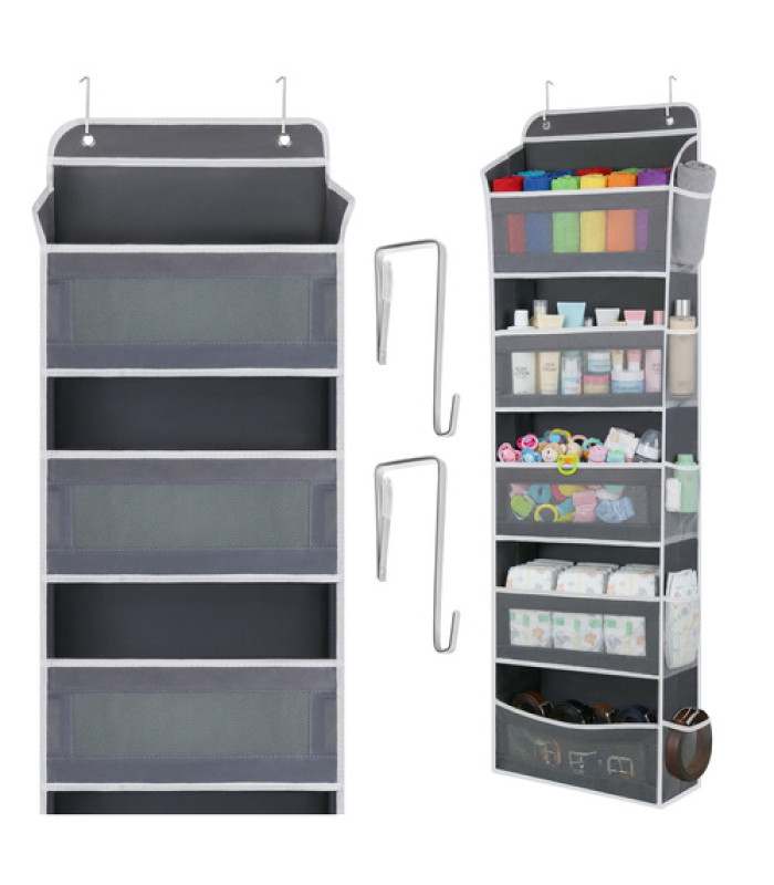 Šis uz durvīm karināmais organizators ir praktisks risinājums mājām, kur svarīga ir vietas taupīšana un pārskatāma mantu uzglabāšana. Tas ir piemērots kosmētikai, aksesuāriem, rotaļlietām, higiēnas precēm, apģērba piederumiem un citiem ikdienas sīkumiem. Pateicoties 5 plauktiem un papildu kabatām, viss ir viegli sasniedzams un sakārtots.