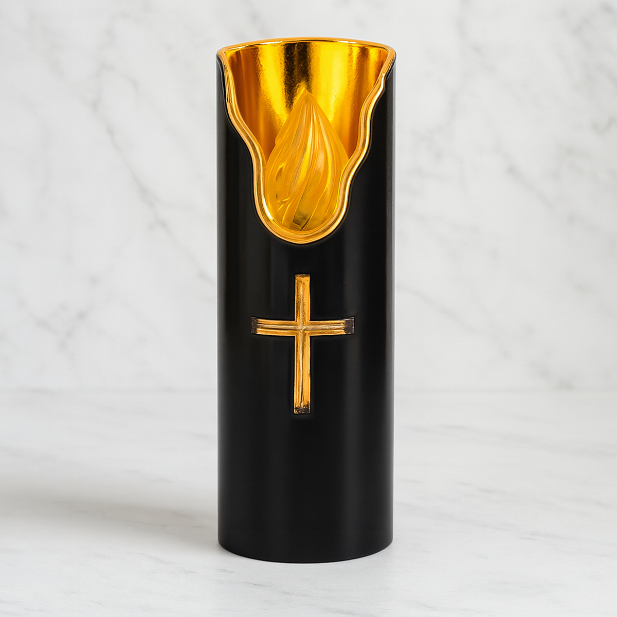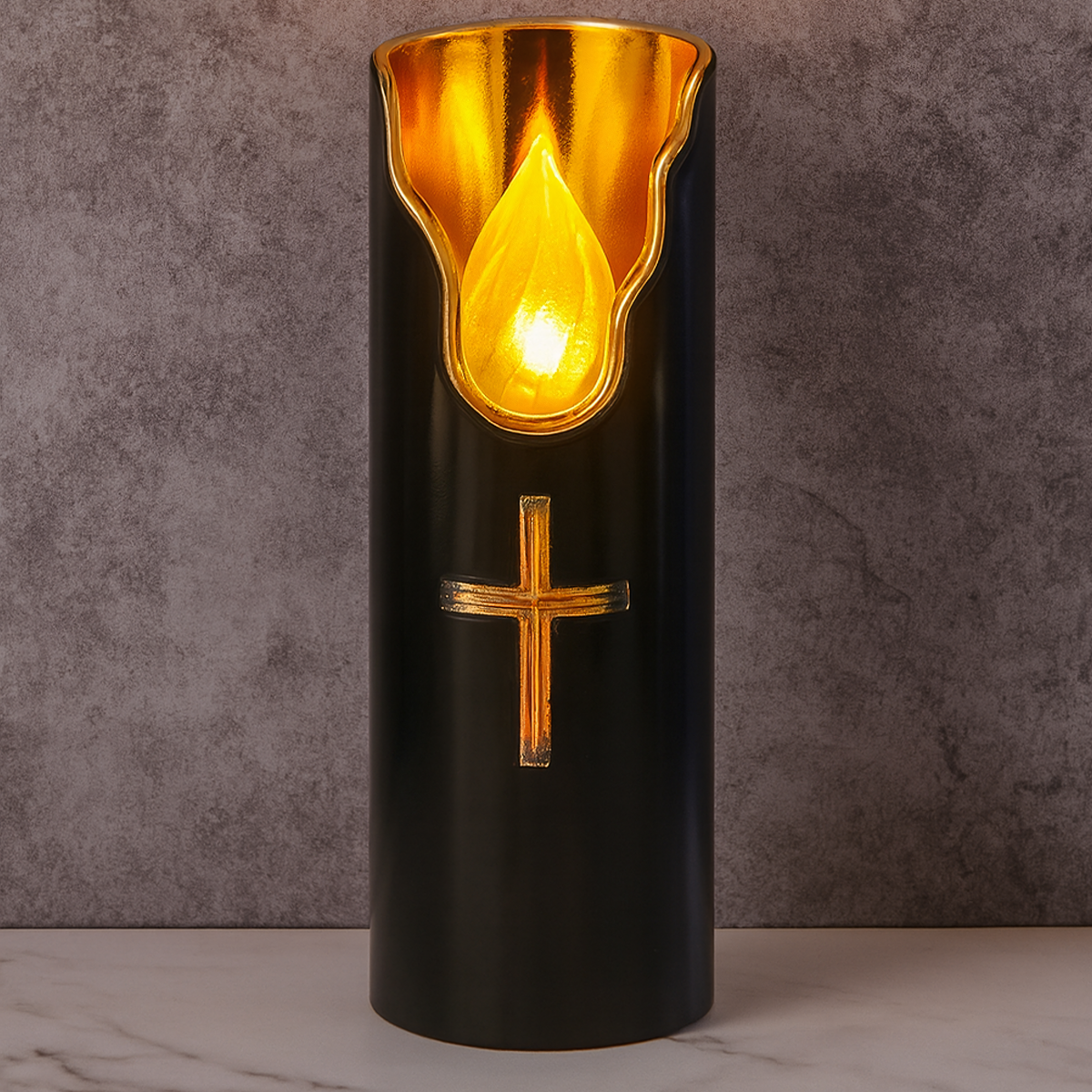 Mūsdienīga LED svece melnā krāsā ar dabiskas liesmas efektu ir lieliska elegances un izturības kombinācija. Pateicoties bateriju barošanai, svece spīd spoži un ilgi, neradot ugunsgrēka vai dūmu risku.