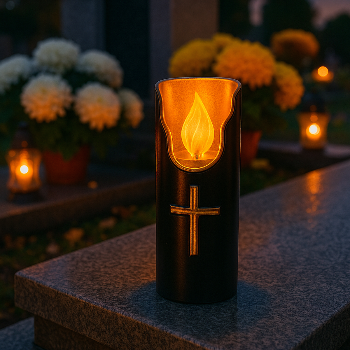 LED svece – elegants un drošs ieliktnis kapu svecēm
