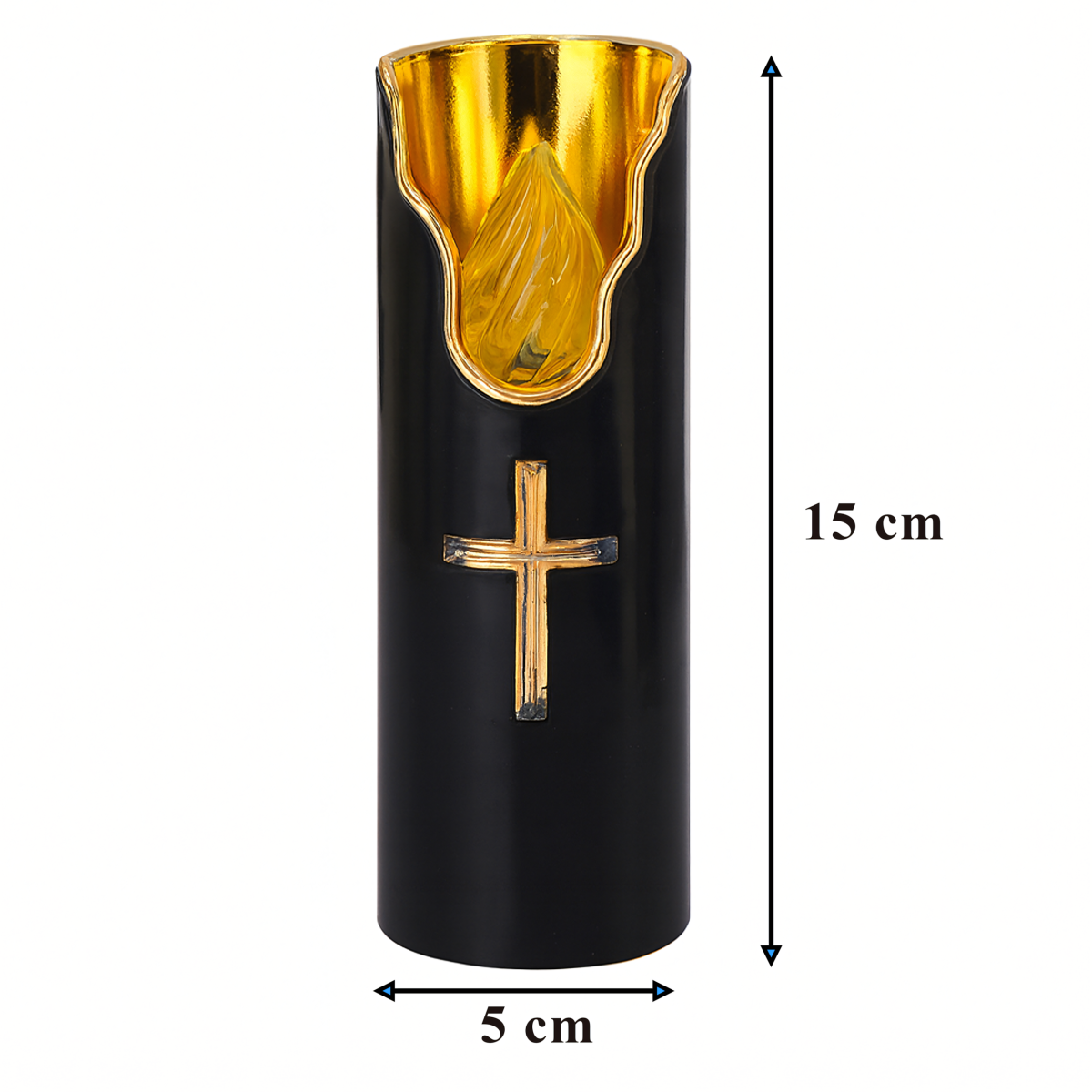 LED svece uz baterijām melna ar liesmas efektu 15cm - Ieliktņi kapu svecēm