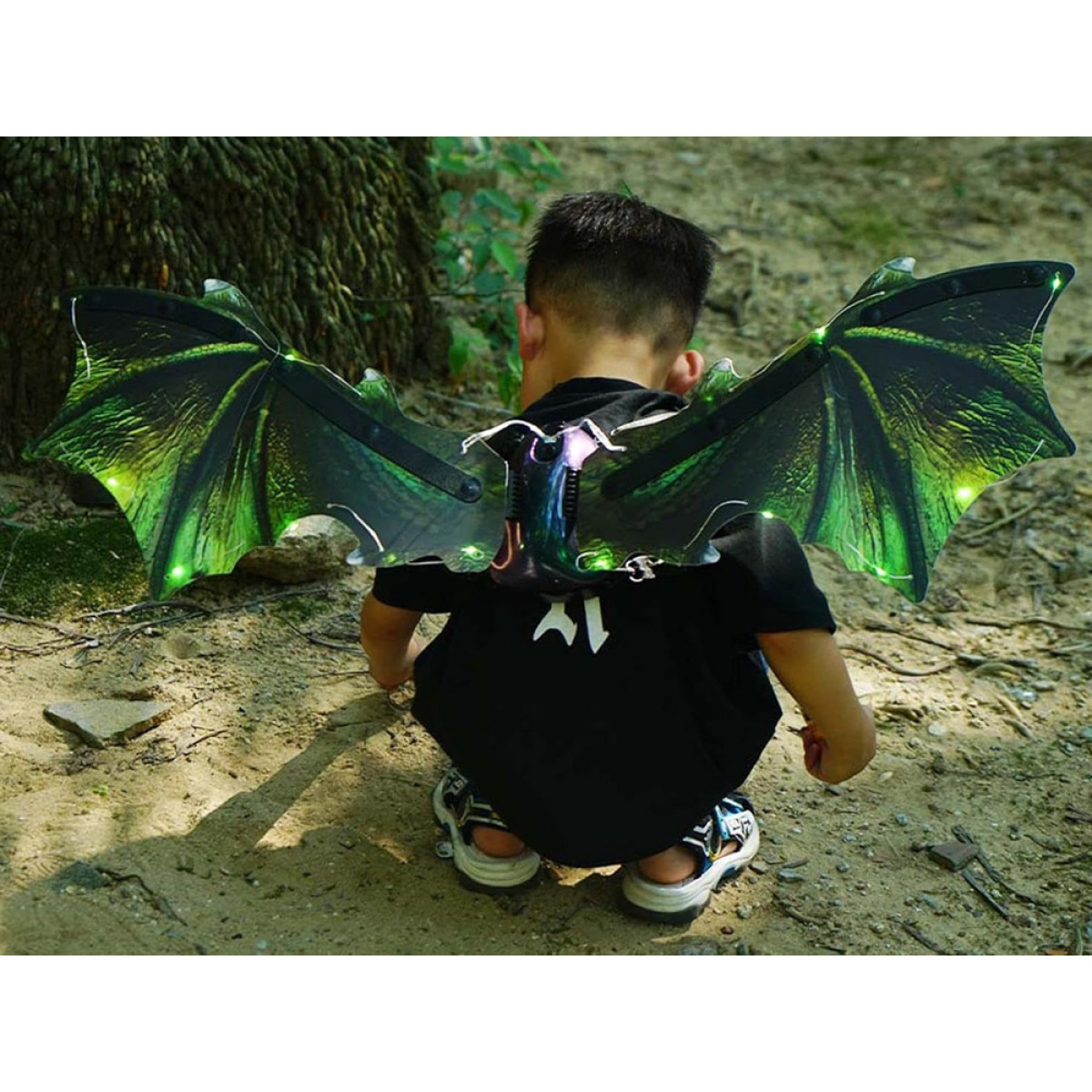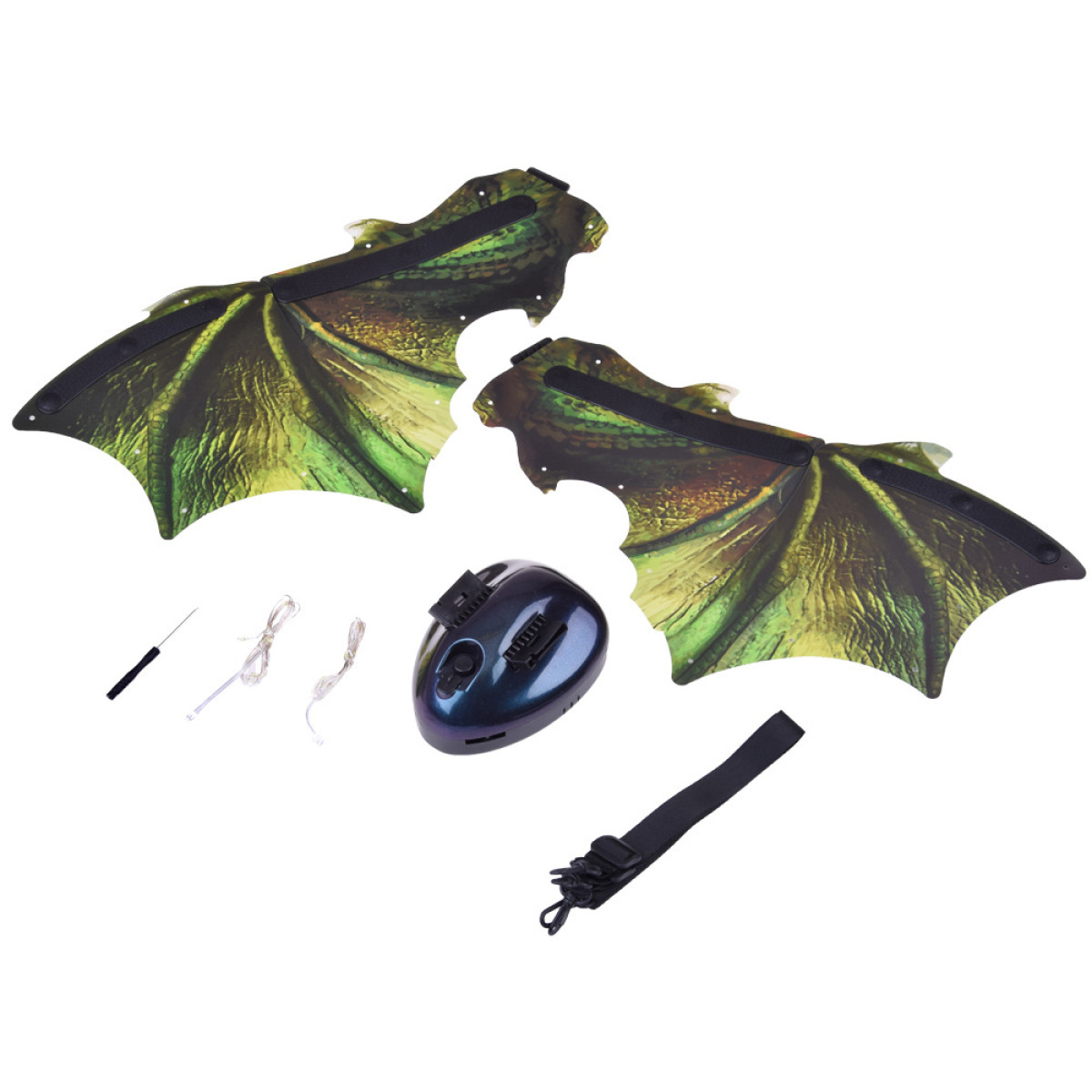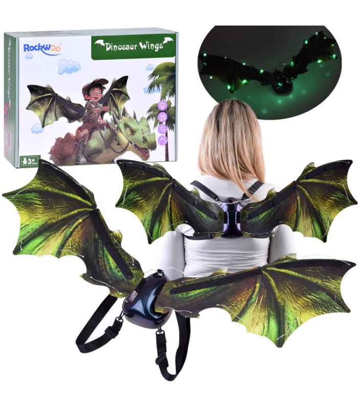 Spīdošie spārni ir interaktīva rotaļlieta, kas aizved bērnus uz burvīgu fantāzijas un piedzīvojumu pasauli. Šie iespaidīgie spārni ir aprīkoti ar efektīvu LED apgaismojumu, kas ļauj mazajiem justies kā īstiem pūķiem vai dinozauriem. Nospiežot pogu starp spārniem, tie sāk kustēties, spīdēt un atskaņot pūķa skaņas.