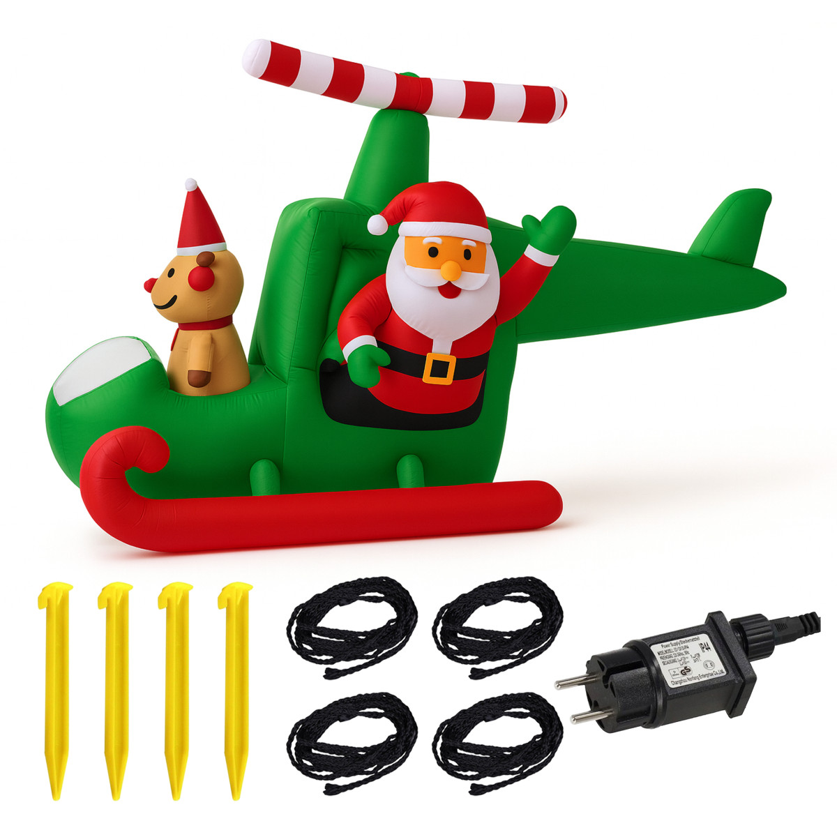 Lidojošs Ziemassvētku vecītis ar 1,6 m piepūšamām LED ragavām ir iespaidīgs dekors, kas sniegs jūsu dārzam svētku burvību. Pateicoties iebūvētajām LED diodēm, tas spīd siltā gaismā, un automātiskā piepūšana ļauj to sagatavot lietošanai dažu sekunžu laikā. Izturīgs, ūdensizturīgs materiāls garantē prieku un svētku atmosfēru daudzus gadus.