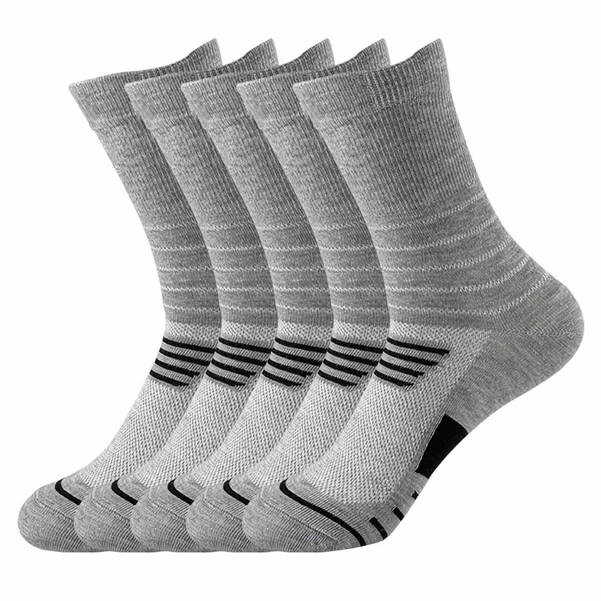 Rūpējieties par savām kājām ziemas dienās! Komplektā ietilpst 10 pāri vīriešu termisko zeķu, kas izgatavotas no augstas kvalitātes materiāla, nodrošinot izcilu pielāgošanos, elpojamību un izturību. Zeķes efektīvi novada mitrumu un uztur kājas sausas, garantējot komfortu pat ilgstošas valkāšanas laikā. Ideāli piemērotas ziemas apaviem, darba apaviem, pārgājienu un sporta apaviem – tās būs piemērotas jebkurā situācijā.