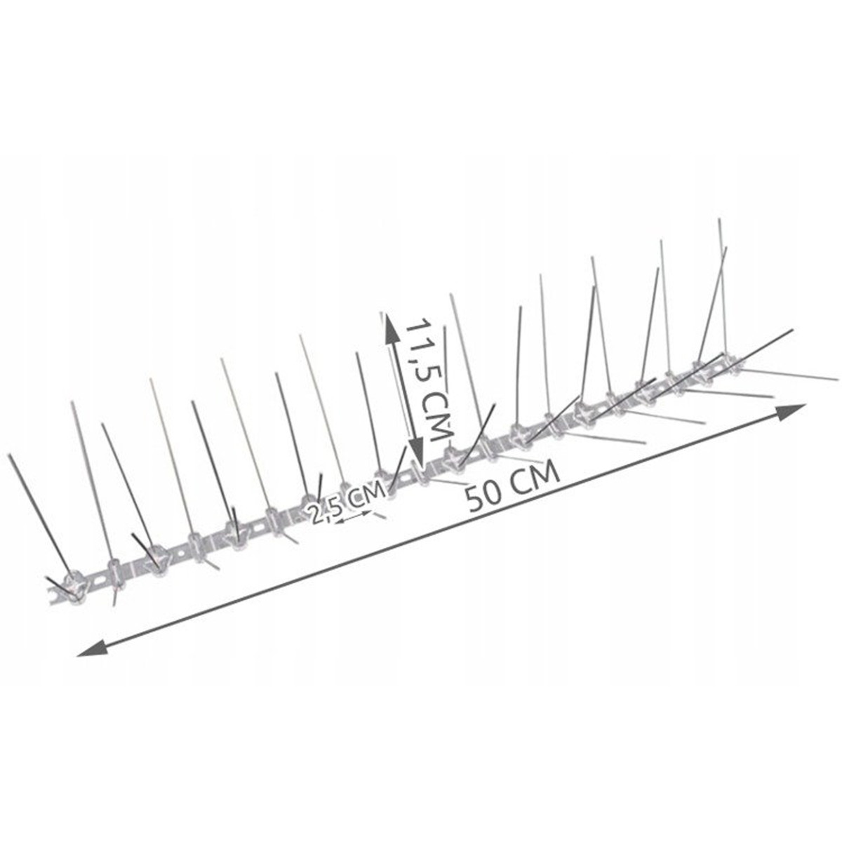 Metāla nerūsējoši putnu atbaidītāji, kas ir efektīvs risinājums jūsu īpašuma aizsardzībai pret putniem. Komplektā ir 100 gabali, katrs ar 50 cm garumu un 40 blīvi izvietotiem atbaidītājiem. Šie putnu atbaidītāji nodrošina maksimālu aizsardzību pret putnu nosēšanos uz jumtiem, palodzēm, balkoniem un citām virsmām. Pateicoties plašam izvietojumam, tie efektīvi aizsargā pat lielākas platības.