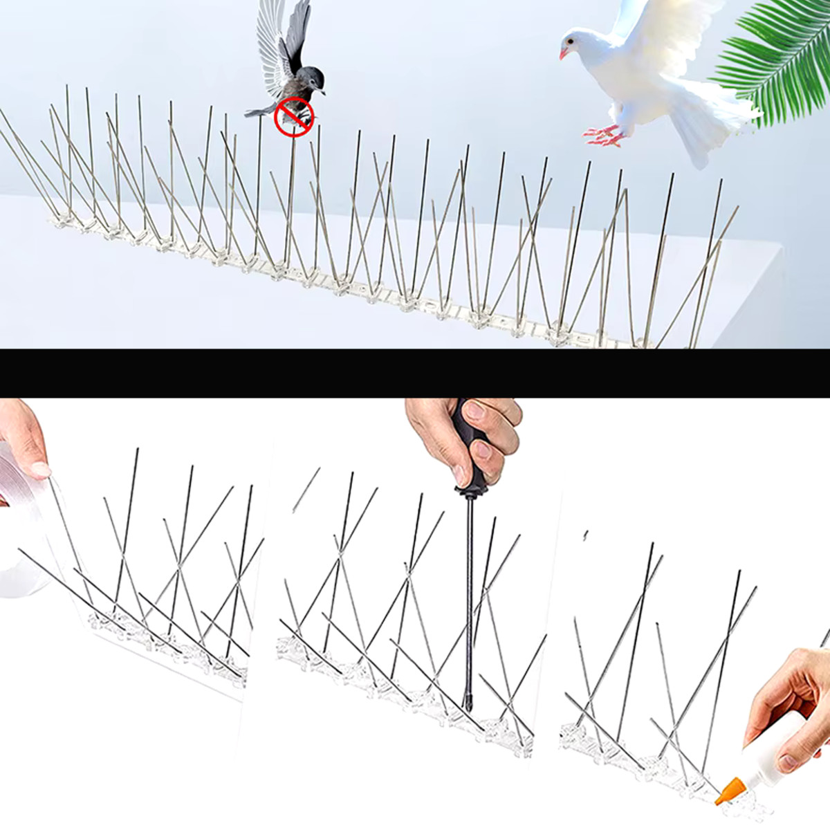 Putnu atbaidītājiem ir polikarbonāta pamatne, kas ir izturīga pret mainīgiem laika apstākļiem un ilgstošu UV starojumu. Tās efektīvi novērš putnu nosēšanos un uzturēšanos, tostarp arī baložu.