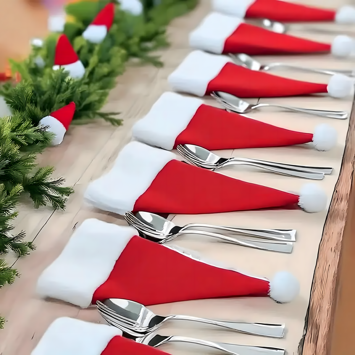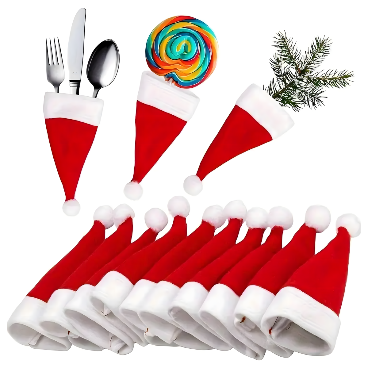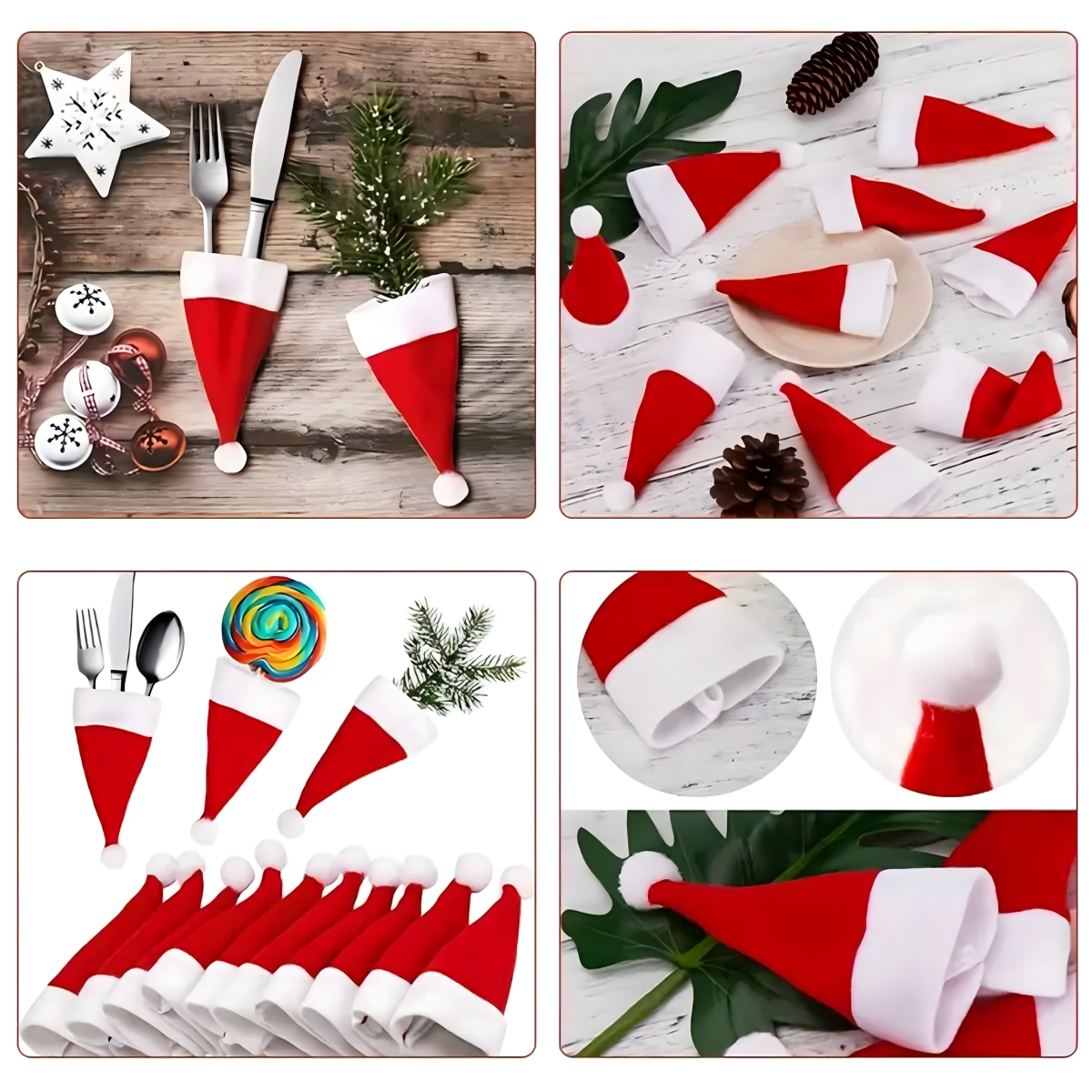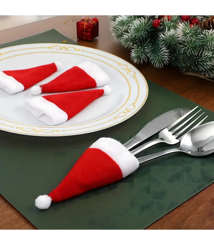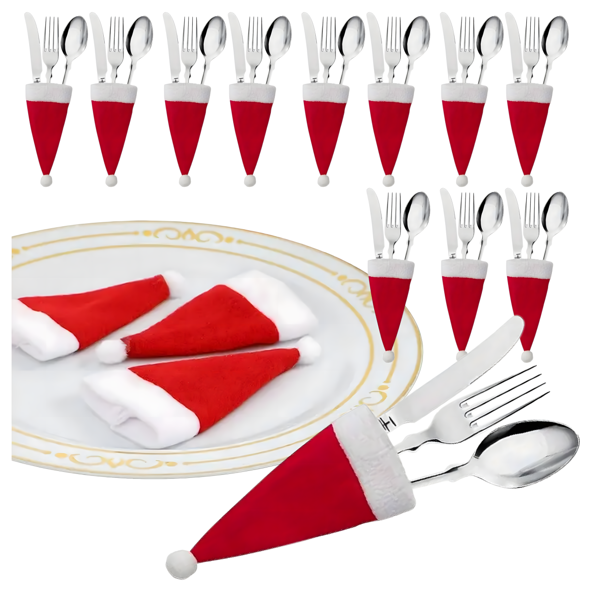 12x Svētku galda piederumu maciņi Ziemassvētku cepures formā.