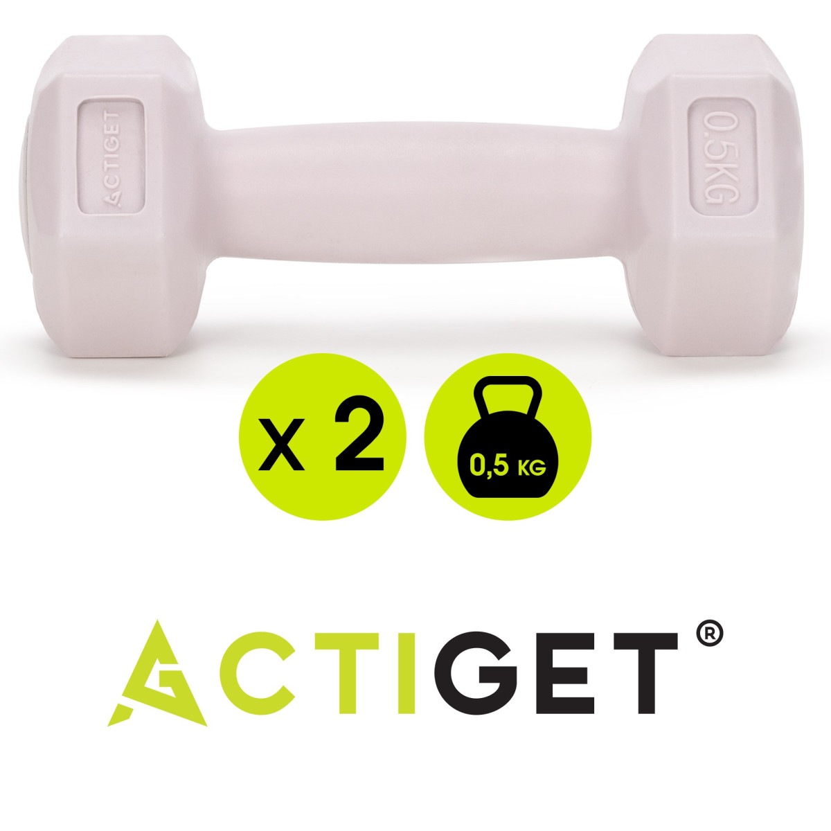 2 x 0,5 kg sešstūra hanteles fitnesa vingrinājumiem, 2 gab. komplekts, gaiši rozā