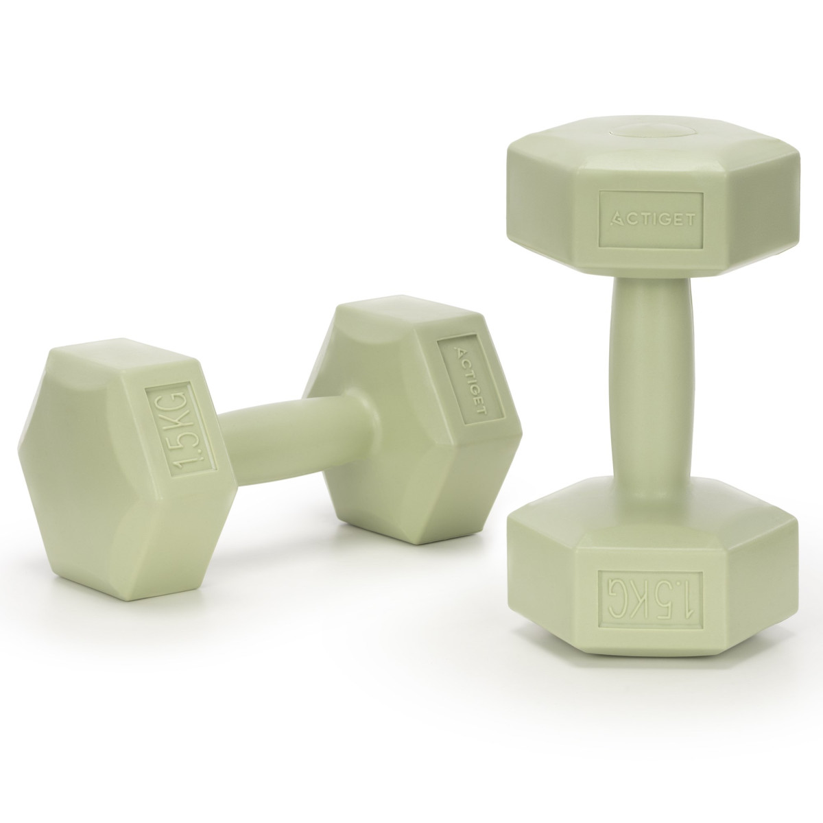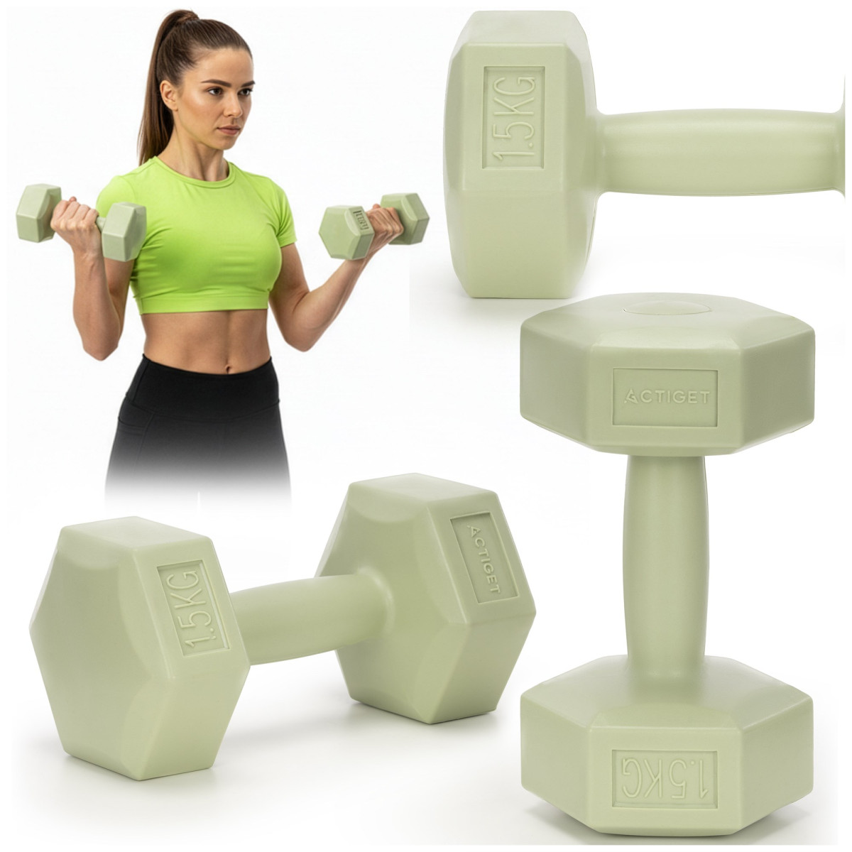 Sešstūra hanteles fitnesa vingrinājumiem, 2 zaļo svaru komplekts