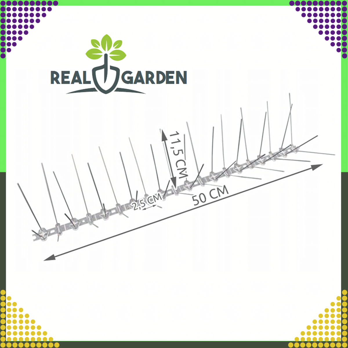 Produkts ar 50 cm garumu un līdz pat 40 blīvi izvietotiem ērkšķiem nodrošina maksimālu aizsardzību pret putnu nosēšanos uz jumtiem, palodzēm, balkoniem un citām virsmām. Plašais izvietojums efektīvi aizsargā pat lielākas platības.