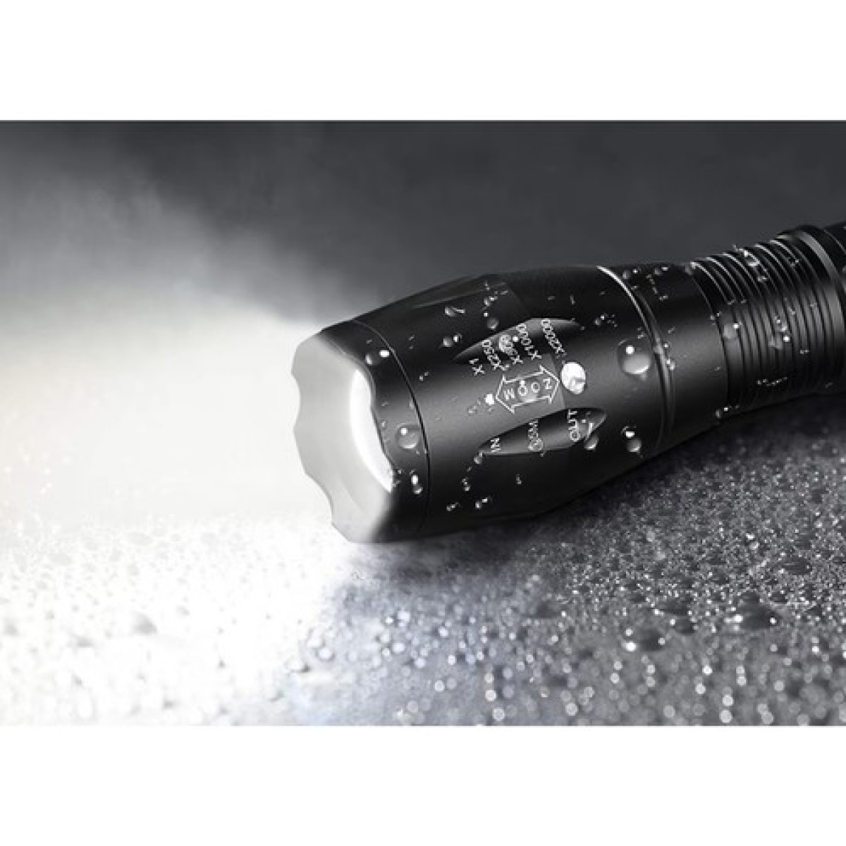 Slēdzis, kas atrodas korpusa galā, ir aizsargāts ar gumijas pārklājumu. Tas aizsargā no putekļiem, mitruma un ūdens. Luktura lietošana lietus laikā nav problēma.