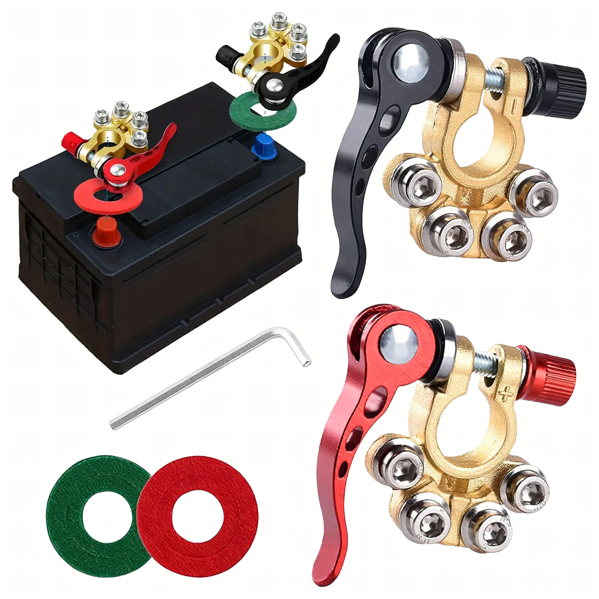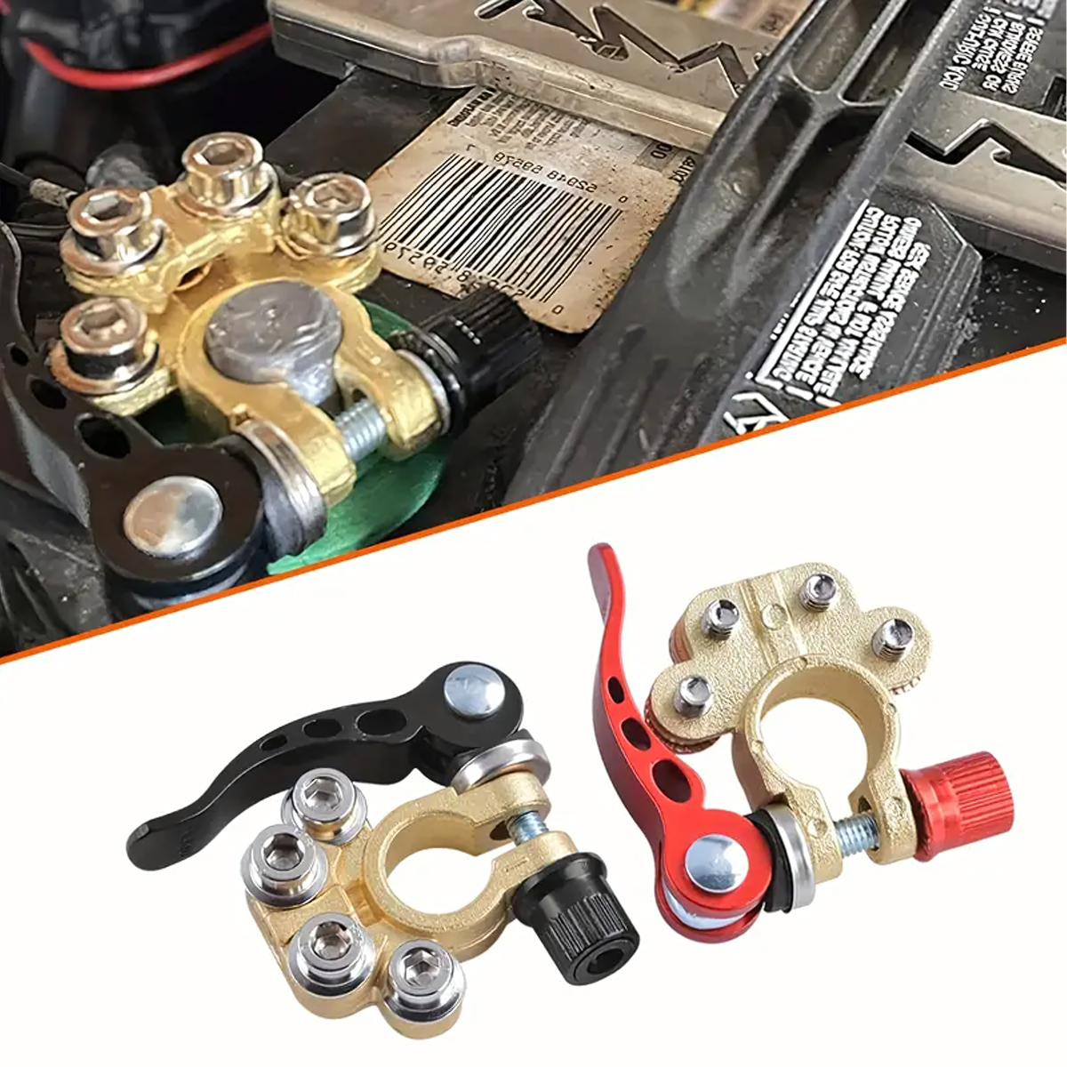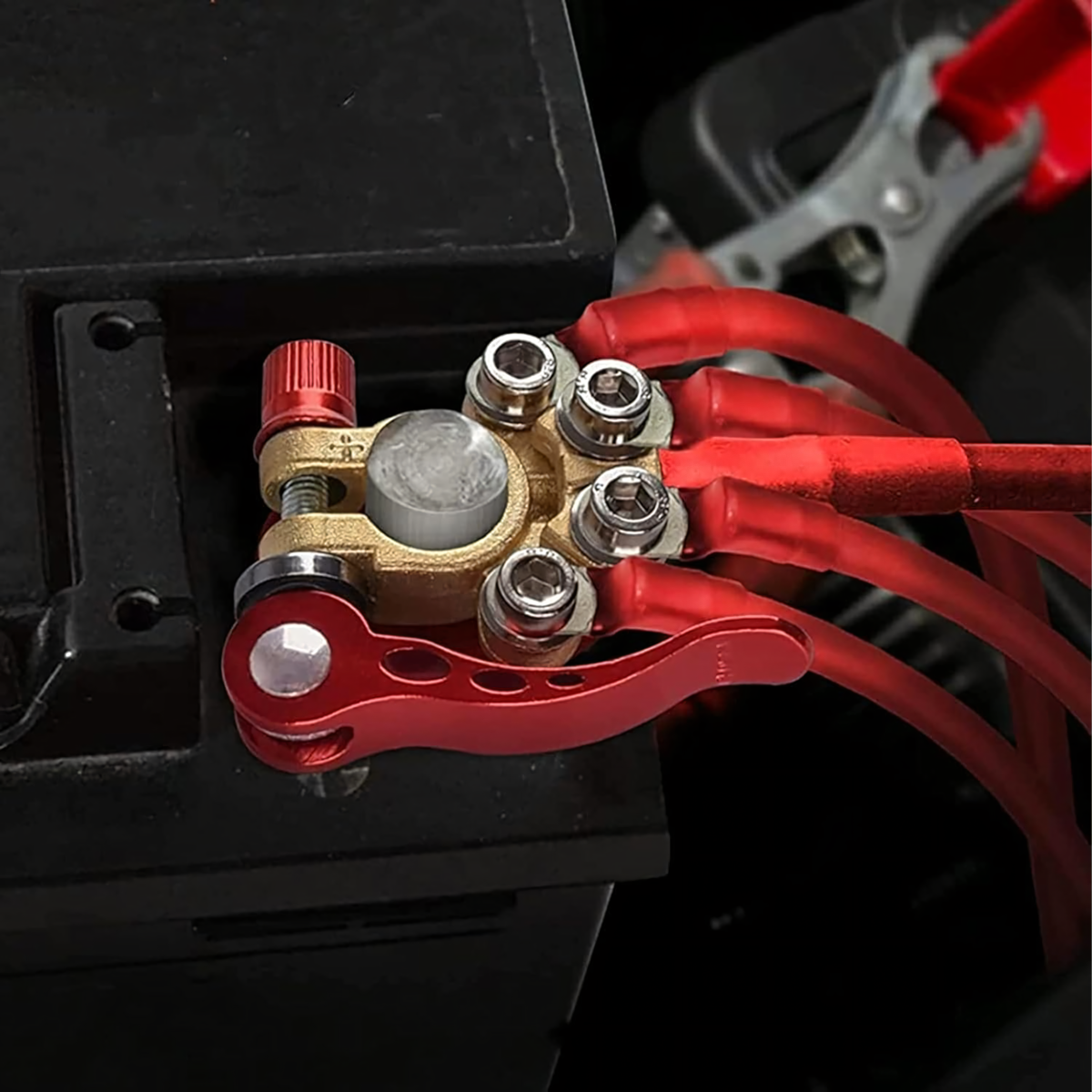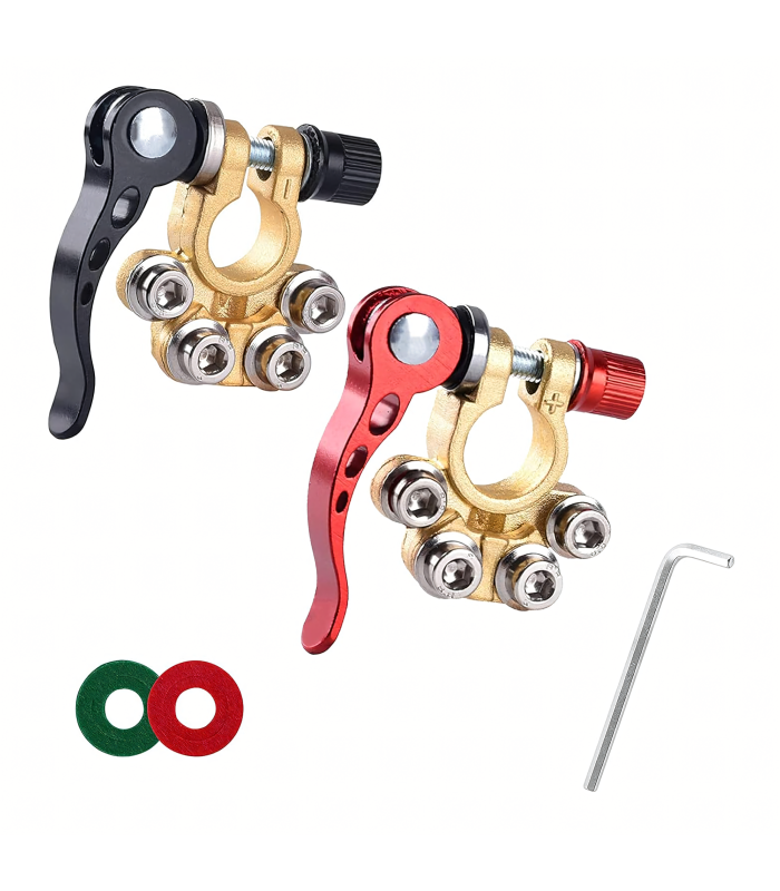 Komplektā ietilpst 2 izturīgas akumulatora klemmes (pozitīva un negatīva) ar maksimālo strāvas stiprumu 800A. Piemērotas lielākajai daļai 6V, 12V un 24V akumulatoru. Izgatavotas no misiņa un nerūsējošā tērauda, tās ir izturīgas pret koroziju un nodrošina drošu un ilgstošu savienojumu.