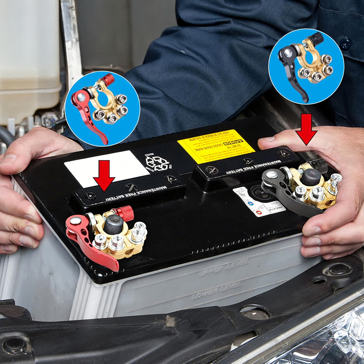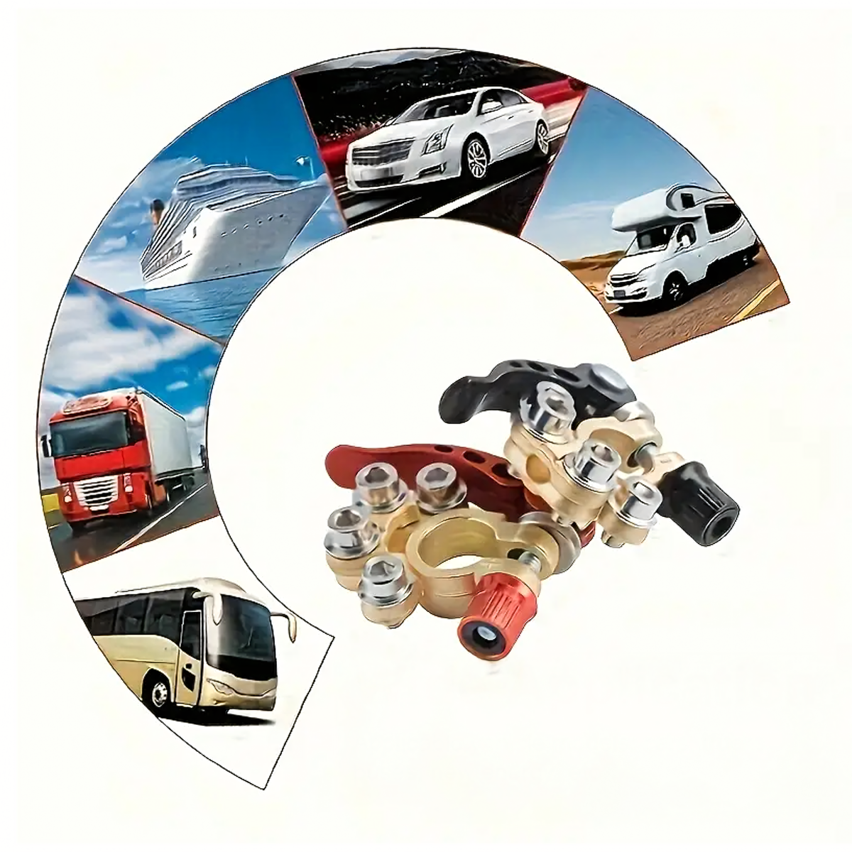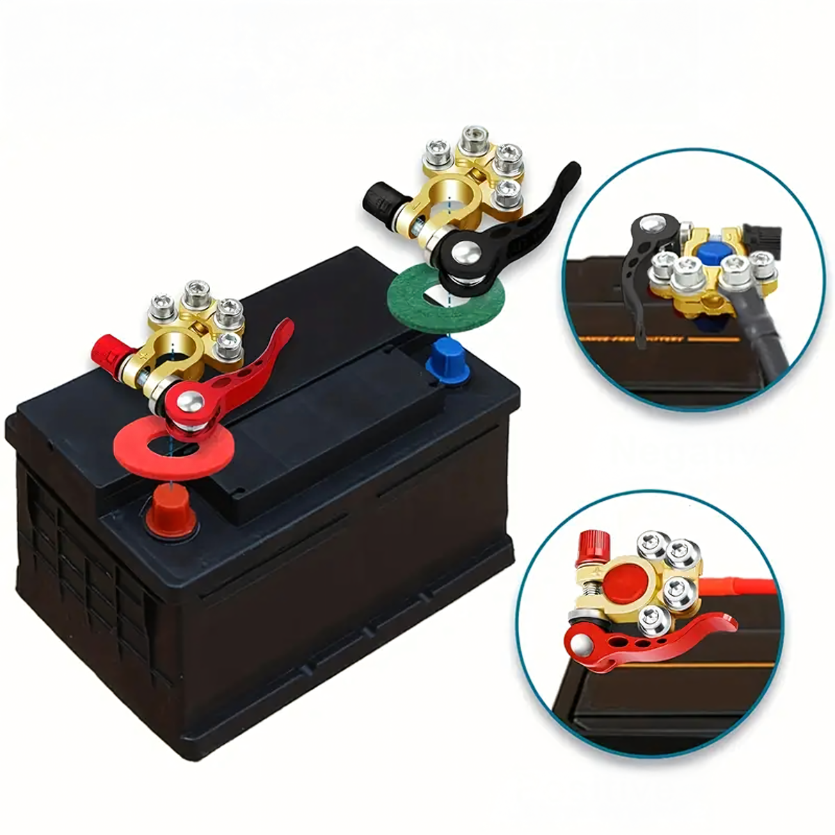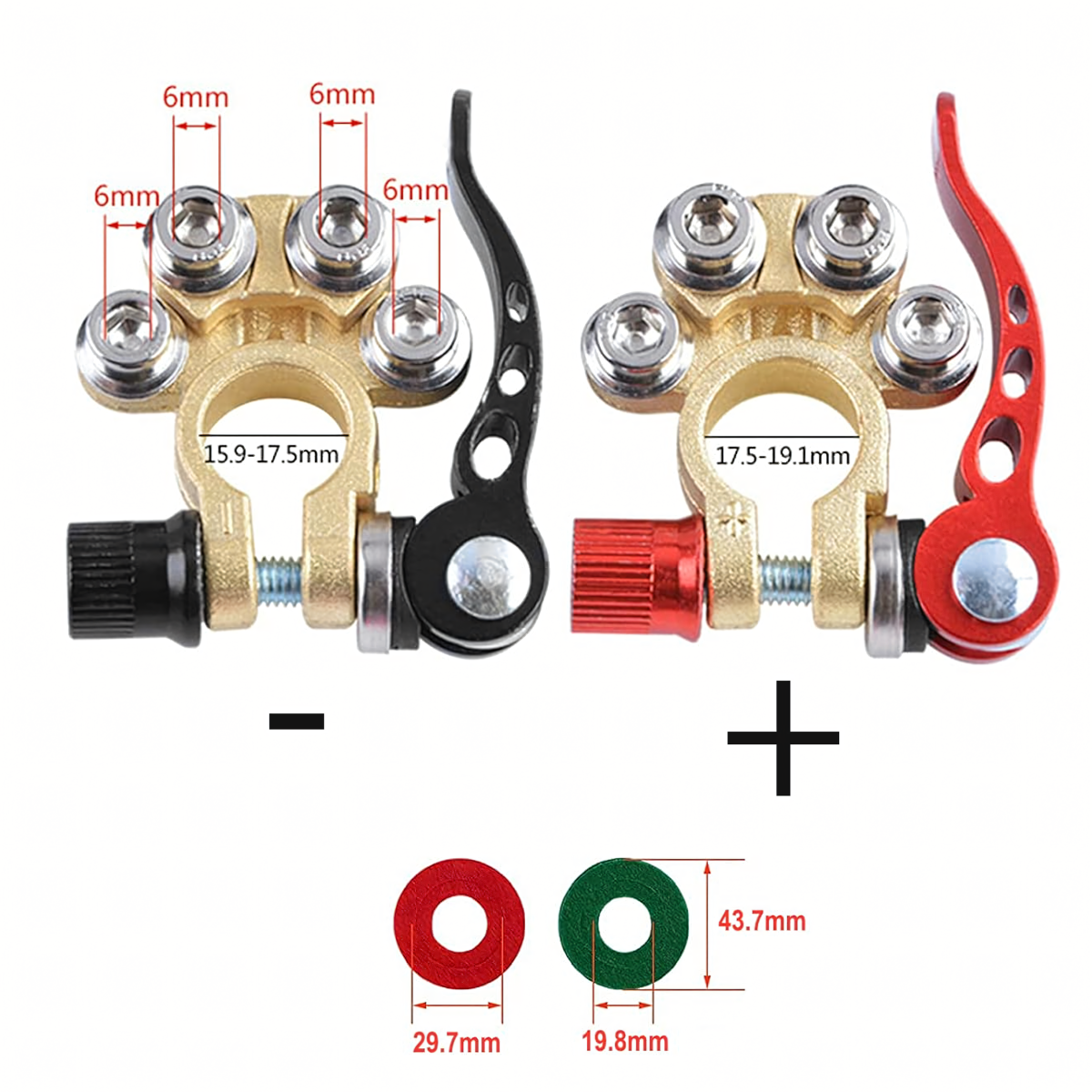 Komplektā ietilpst 2 izturīgas akumulatora klemmes (pozitīva un negatīva) ar maksimālo strāvas stiprumu 800A. Piemērotas lielākajai daļai 6V, 12V un 24V akumulatoru. Izgatavotas no misiņa un nerūsējošā tērauda, tās ir izturīgas pret koroziju un nodrošina drošu un ilgstošu savienojumu.