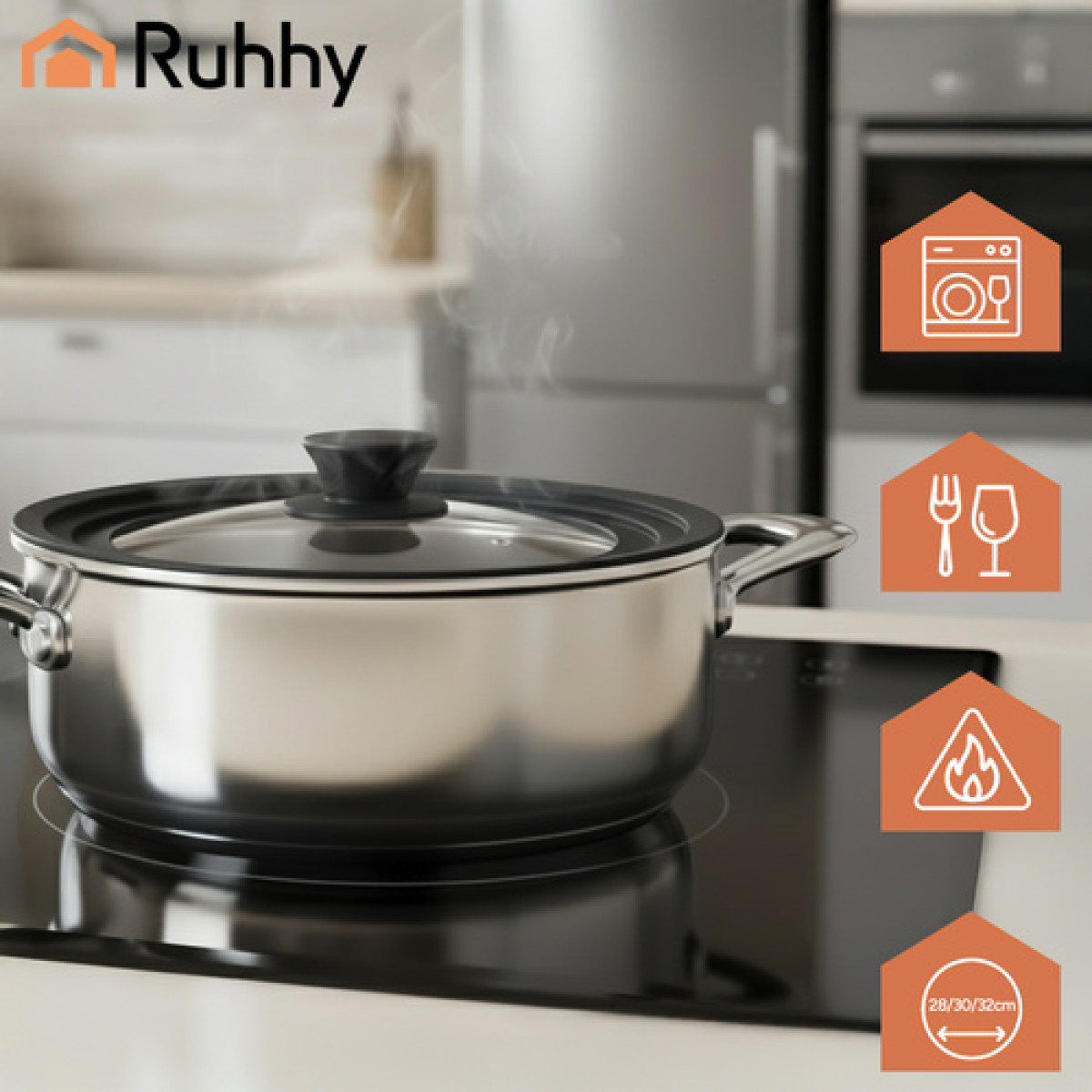 Univerzālais vāks 3-vienā Ruhhy silikona-stikla vāks katliem un pannām 28/30/32 cm