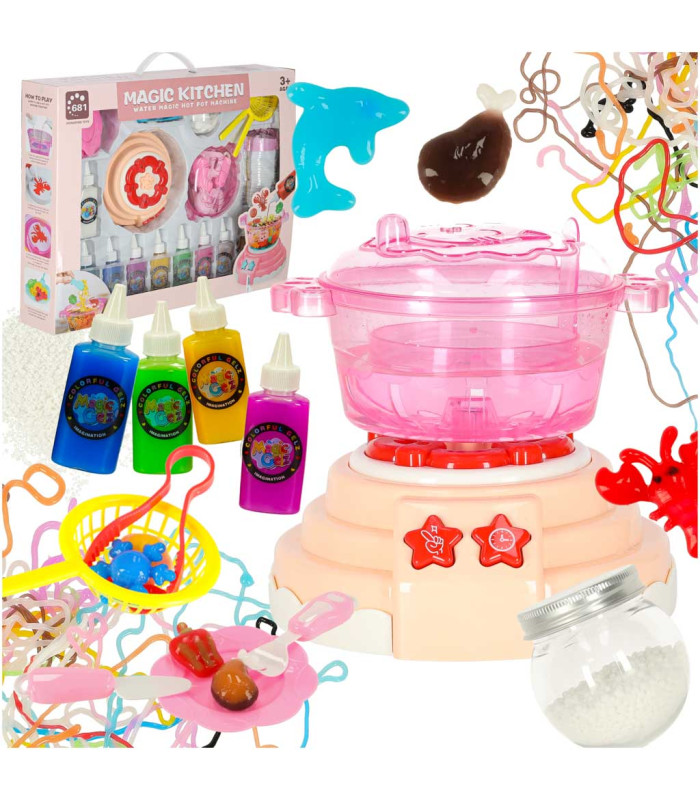 Burvju virtuve ir radošs komplekts, kas iedvesmojies no Āzijas hotpota idejas. Katliņā, kurā atrodas īpašs ūdens šķīdums, ievieto formiņas, kas piepildītas ar želeju. Pēc dažām sekundēm notiek burvība – izņemot no šķidruma, rodas unikāla 3D figūra. Komplektā ir 12 krāsainas želejas, kuras var brīvi sajaukt, radot unikālas kombinācijas.
