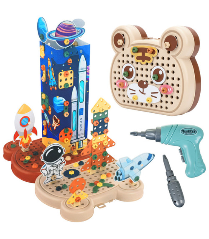 - Elektriskā skrūvmašīna - īsts rīks mazo rokās! Palīdz skrūvēt un atskrūvēt detaļas, attīstot koordināciju un manuālās prasmes.