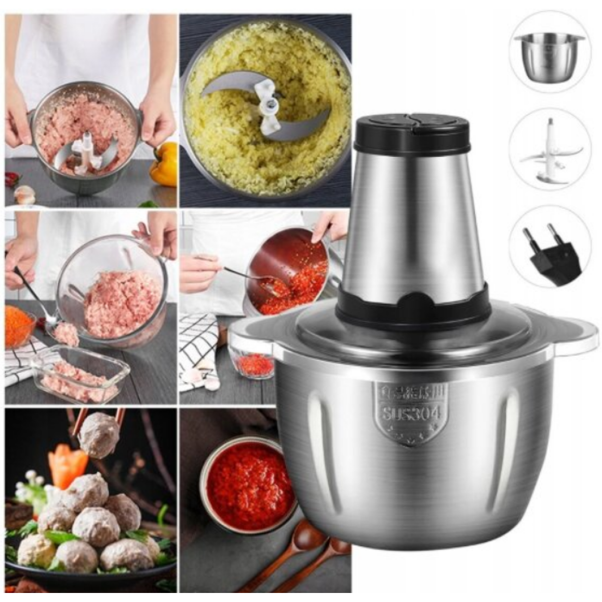 Praktisks un universāls virtuves smalcinātājs un blenderis ātrai un ērtai dažādu sastāvdaļu sagatavošanai. Pateicoties ietilpīgajam 3 litru traukam un efektīvai darbībai, ierīce ir lieliski piemērota ikdienas lietošanai – no dārzeņu smalcināšanas līdz gaļas apstrādei vai riekstu drupināšanai.