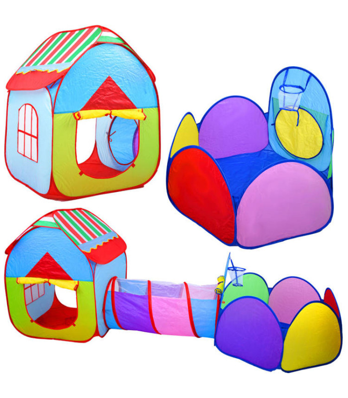 Brīnišķīgs 3v1 spēļu komplekts teltis tunelis dārzs ir piedāvājums katram bērnam. Krāsains mājiņa ir ātri saliekama un piedāvā trīs atsevišķus spēļu elementus. Mājiņai ir logi un durvis ar pārklājumu, lai bērns varētu baudīt privātumu. Mājiņu var savienot ar tuneli, ļaujot mazulim praktizēt rāpošanu un caur tuneli nokļūt laukumiņā. Laukums ar basketbola opciju ļaus katram mazulim izspēlēt savas spēles.