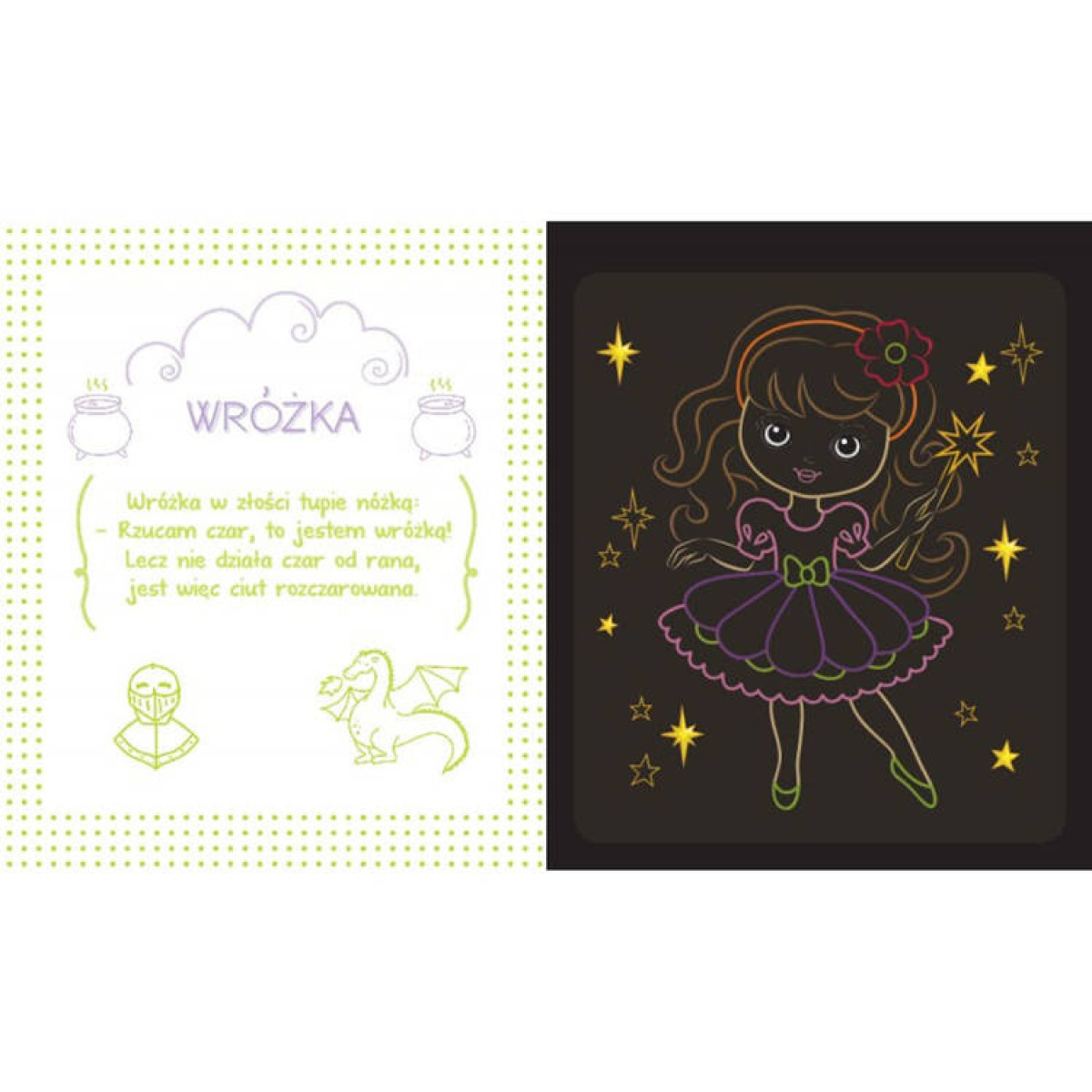 Izmantojiet zīmuli kā burvju nūjiņu, lai uz melnām lapām atklātu krāsainu dzīvnieku, transportlīdzekļu un pasaku varoņu pasauli.
