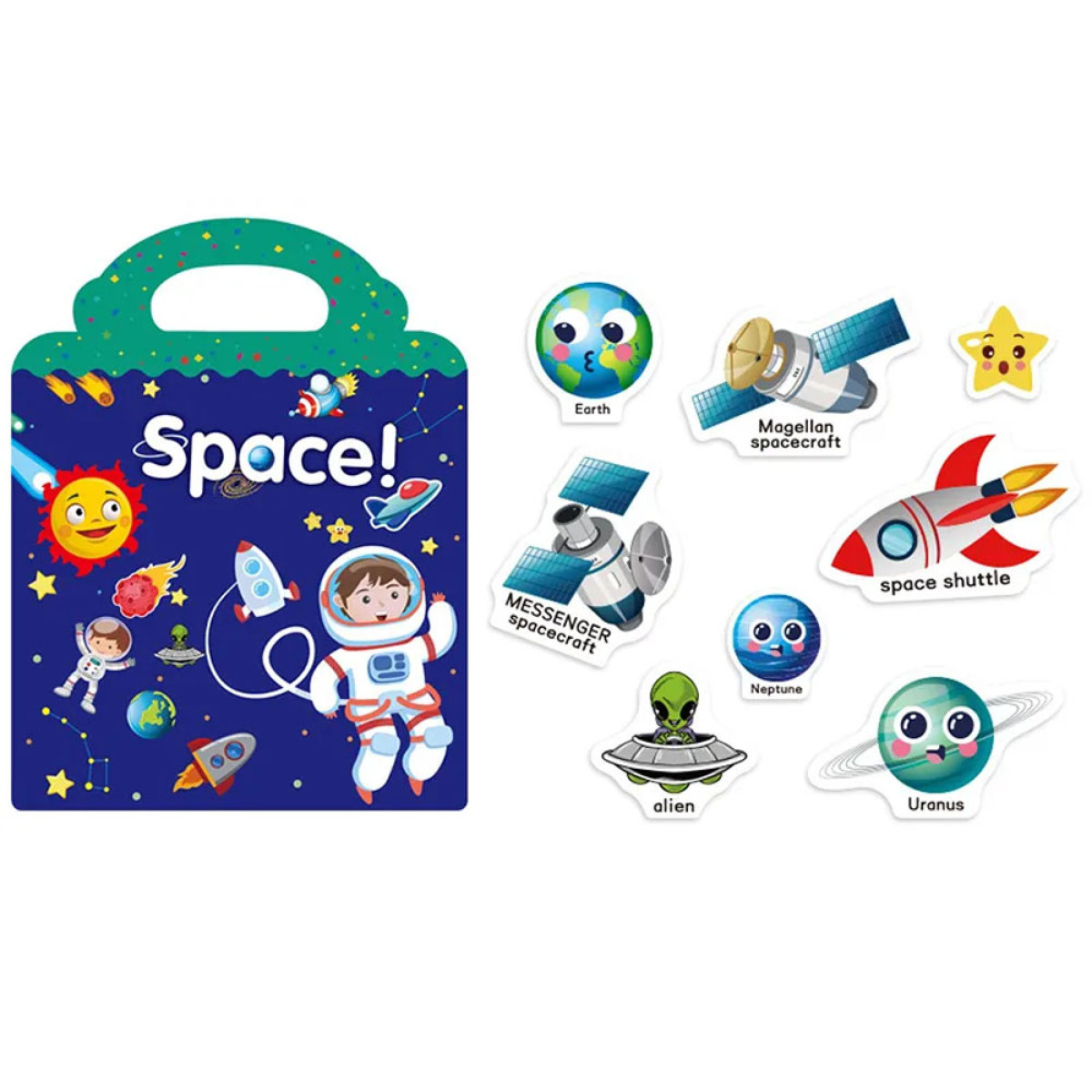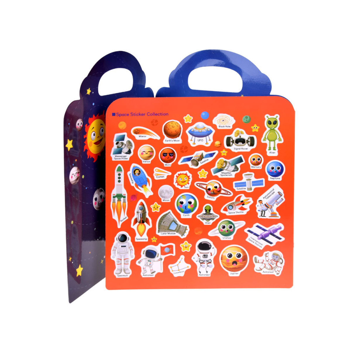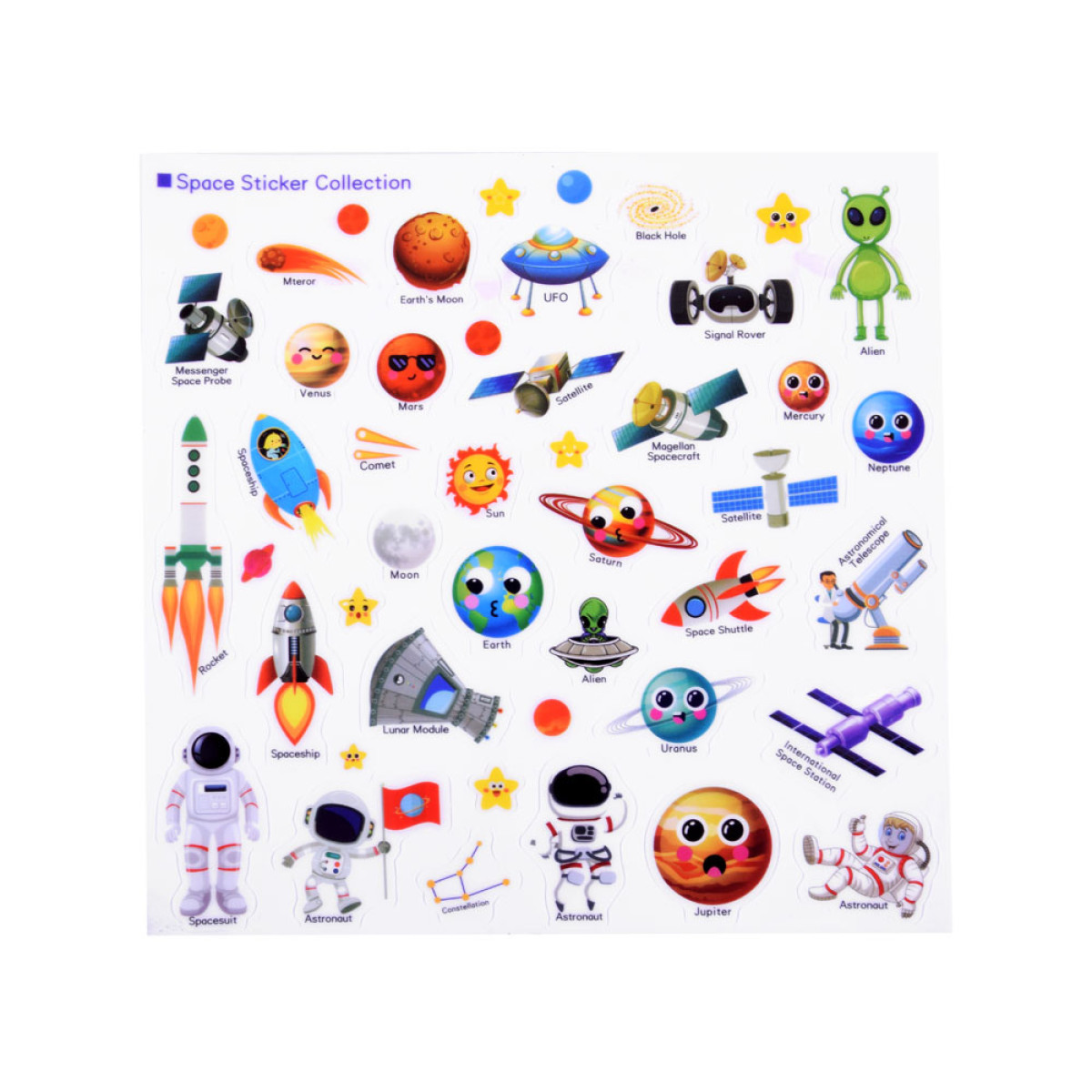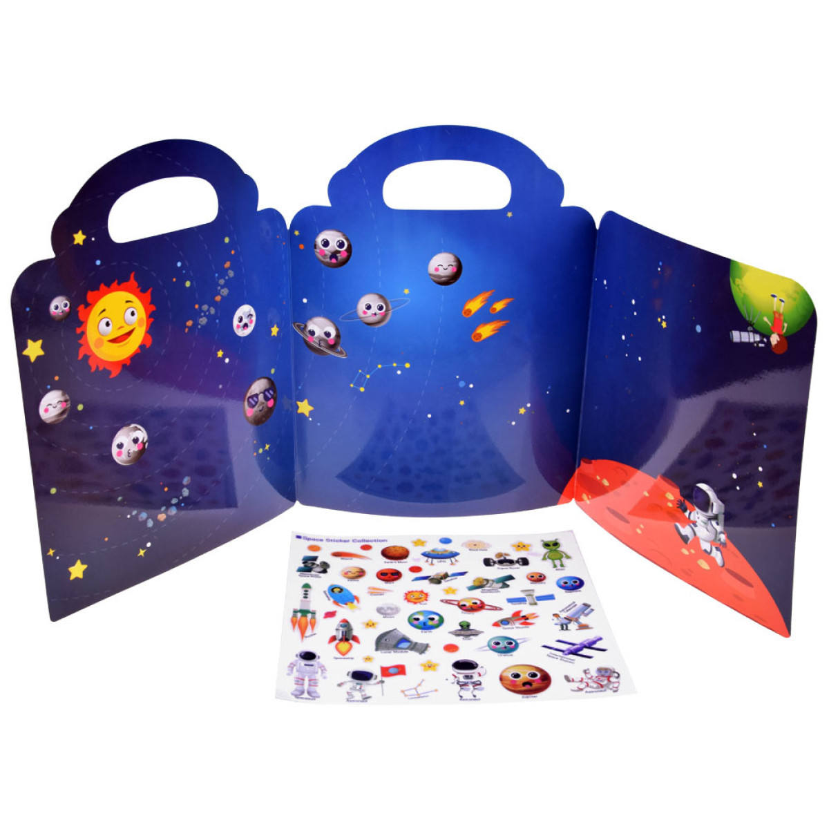 Uzlīmju albums ir lieliska izklaide katram mazajam, kas mīl radoši pavadīt laiku. Izbaudiet prieku, veidojot savu pirmo albumu. Projektējiet un izveidojiet kosmisko pasauli ar uzlīmju komplektu. Kosmoss ir viena no aizraujošākajām un vismazāk izpētītajām telpām, tāpēc dodieties pasaulē, kas pilna planētu. Uzlīmes pievienojiet kartona lapai ar gludu virsmu. Iesaistoša izklaide bērniem. Uzlīmes var izmantot arī dažādām citām spēlēm vai bērnu zīmējumu dekorēšanai. Spēles laikā mazulis trenē precizitāti un uzmanību, vingrina pirkstiņus, mācās pacietību un koncentrēšanos.