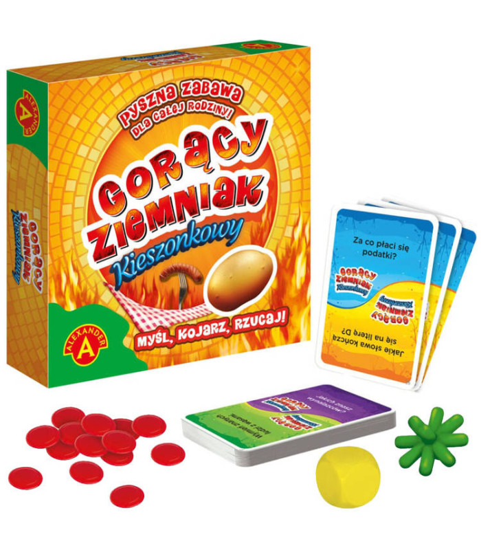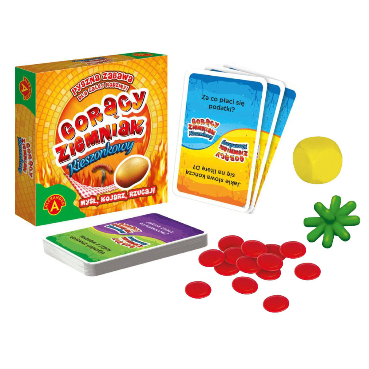 Lielisks pārdošanas hits, kas tagad ērti ietilpst jūsu kabatā! Tā ir aizraujoša ģimenes spēle, kas pārbauda refleksus. Pagriez ripu vai iestati laiku aplikācijā, atklāj jautājumu un atbildi pēc iespējas ātrāk! Katrs, kurš sniedz pareizo atbildi, nodod karsto kartupeli nākamajam spēlētājam. Tas, kurš nepaspēj atbildēt līdz laika beigām, paliek ar apdegušu kartupeli un uz spēles laukuma tuvojas grillam. Uzvar spēlētājs, kurš veic vismazāk kustību ar savu figūriņu. Vienkārša, bet ļoti aizraujoša spēle, kas patiks ikvienam neatkarīgi no vecuma.