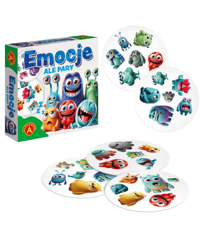 „Ale Pary – Emocje” ir unikāla izglītojoša spēle, kas pievilcīgā veidā palīdz bērniem iepazīt, saprast un nosaukt emocijas. Tā apvieno spēles, refleksus un uztveri, kļūstot par lielisku instrumentu, kas atbalsta jaunāko emocionālo attīstību.