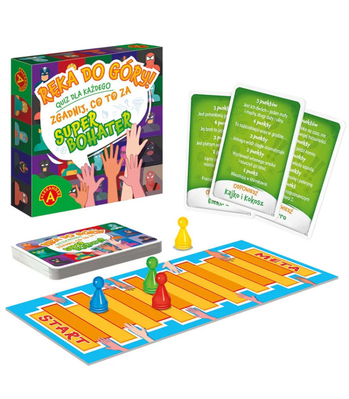 "Kvīzs Rokas Augšā! Uzmini, kas ir šis Supervaronis" ir pilna smieklu, emociju un sacensību galda spēle, ideāli piemērota ģimenes vakaram vai lietainai pēcpusdienai. Tā ir kompakta un jautra galda spēle, kas aizrauj gan bērnus, gan pieaugušos, attīstot uzmanību, refleksus un zināšanas par iemīļotajiem multfilmu un filmu varoņiem.