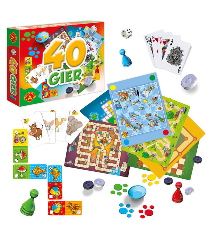 Alexander 40 Galda Spēles ir absolūti nepieciešams priekšmets ikvienas mājas spēļu bibliotēkā. Šis komplekts ir ideāli piemērots ģimenes laika pavadīšanai, spēļu vakariem, dzimšanas dienām un bērnu ballītēm.
