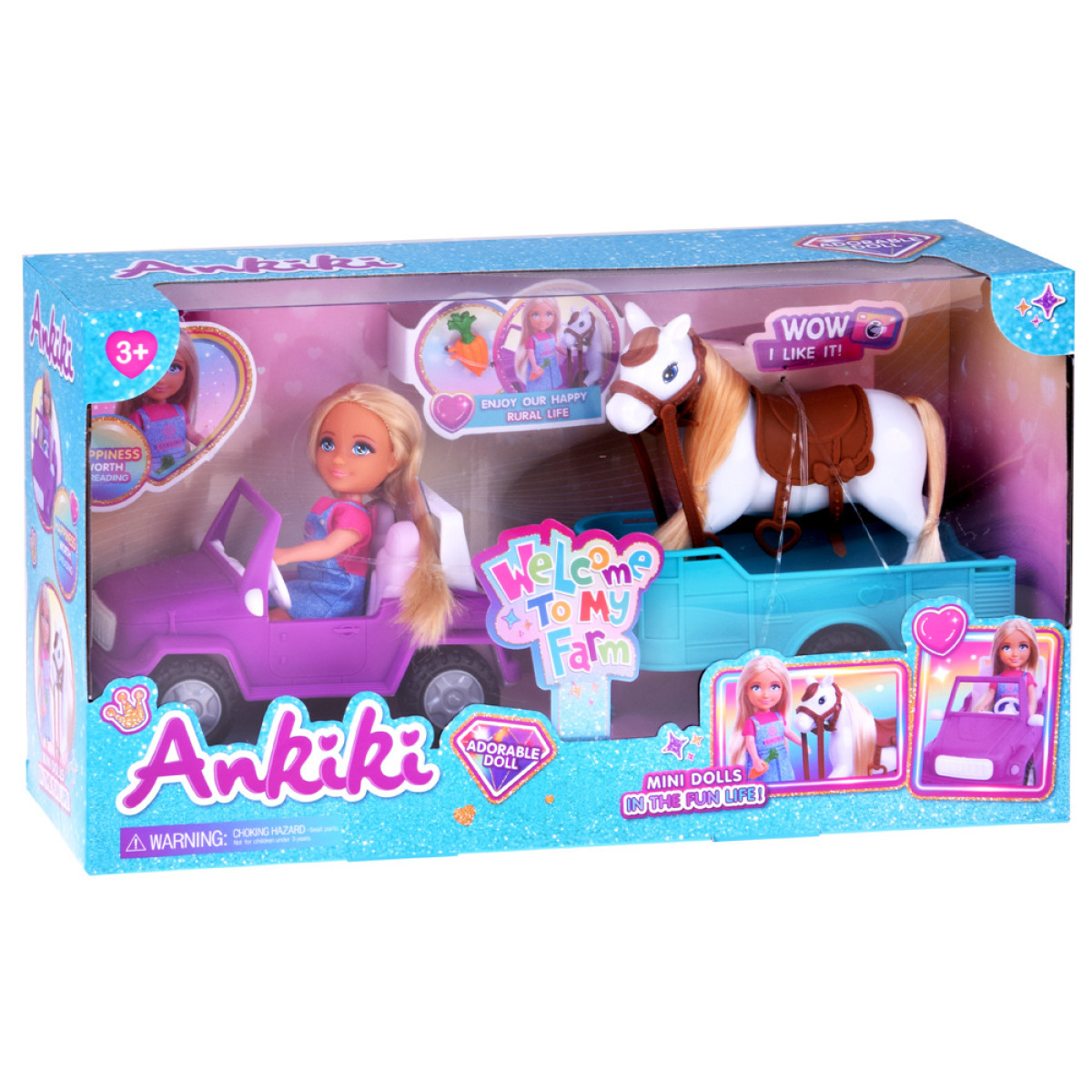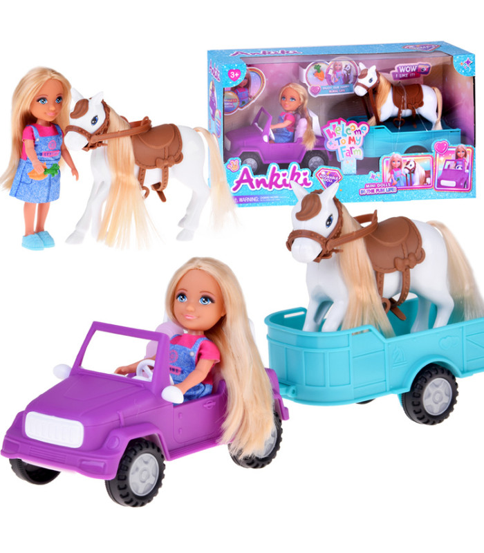 Ankiki Lelles komplekts ar zirgu, automašīnu un piekabi ir lielisks piedāvājums katrai mazai zirgu mīļotājai. Rūpīgi izstrādātie elementi nodrošina stundām ilgu fantastisku rotaļu ar dzīvnieku kopšanu un dzīvi fermā. Ankiki rotaļlietas garantē augstu kvalitāti un estētiku – gan lelle, gan aksesuāri ir izgatavoti ar rūpību par detaļām. Viss ir iepakots iespaidīgā kastē, tāpēc komplekts ir ideāli piemērots kā dāvana.