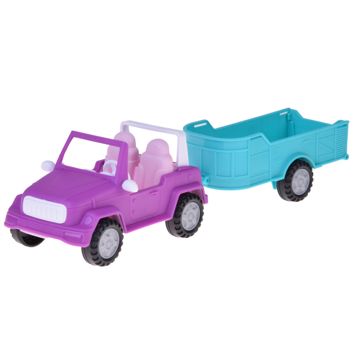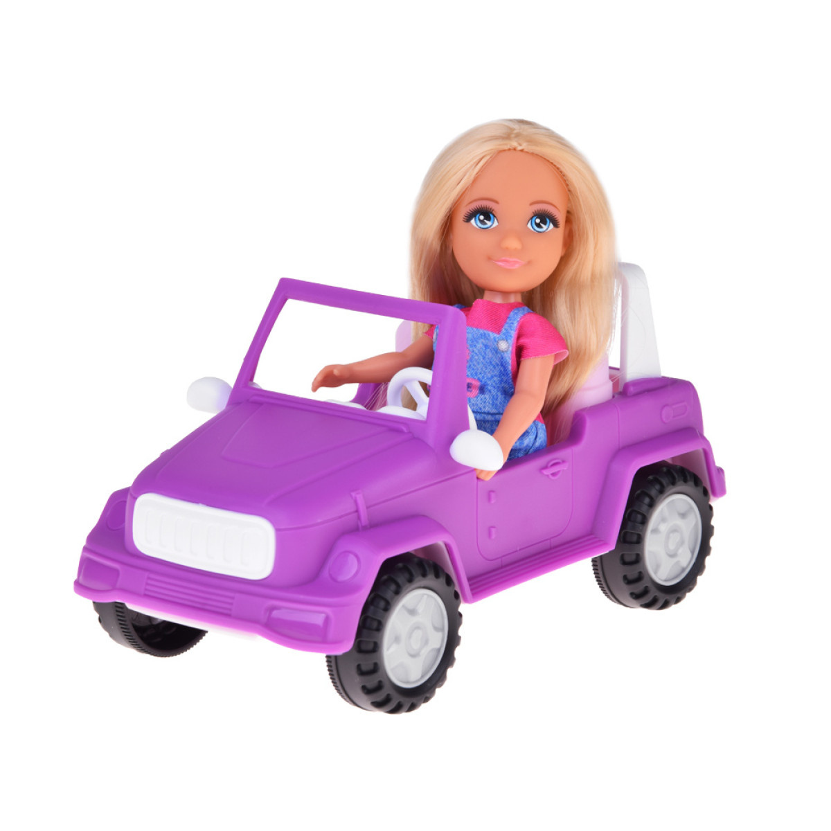 Komplekts ietver meitenīgu apvidus automašīnu ar kustīgu stūri un riteņiem. Auto ir iespaidīgs ar savu violeti-rozā krāsu un detaļām, piemēram, sirsniņu uz riteņa diska. Tas ir pietiekami dziļš, lai lelli varētu ērti sēdināt iekšā.