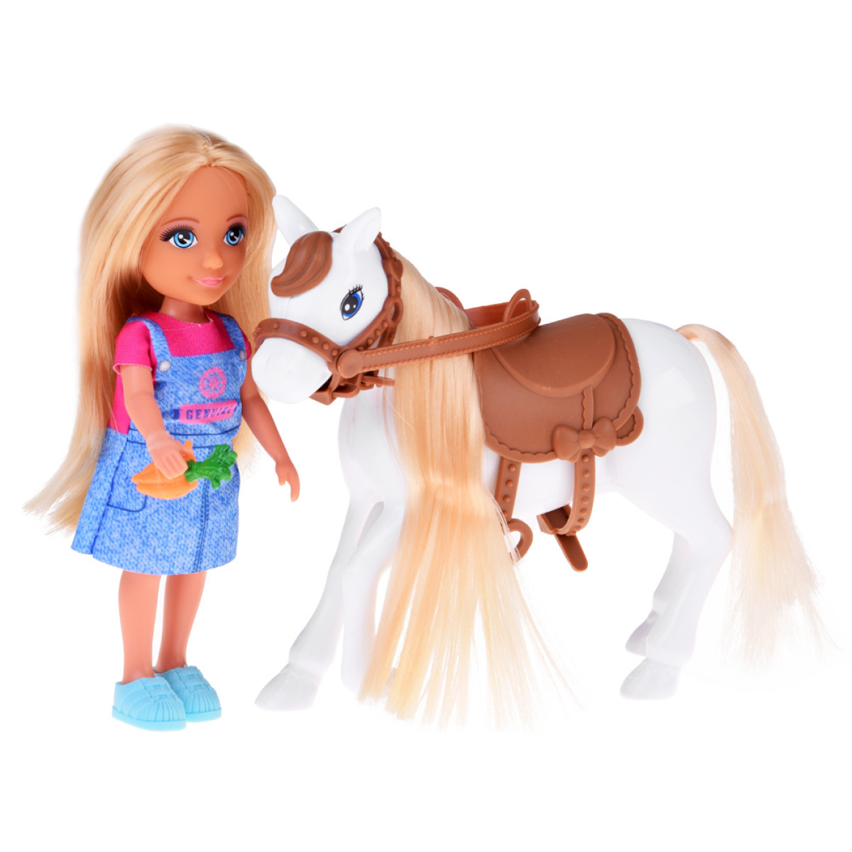 Zirgs ir saldākais šī komplekta elements. Balts ar zeltainu krēpju un asti, tas ir sapnis ikvienam, kam patīk ķemmēt. Uz zirga ir brūns komplekts ar segliem un grožiem, kas ir regulējami.