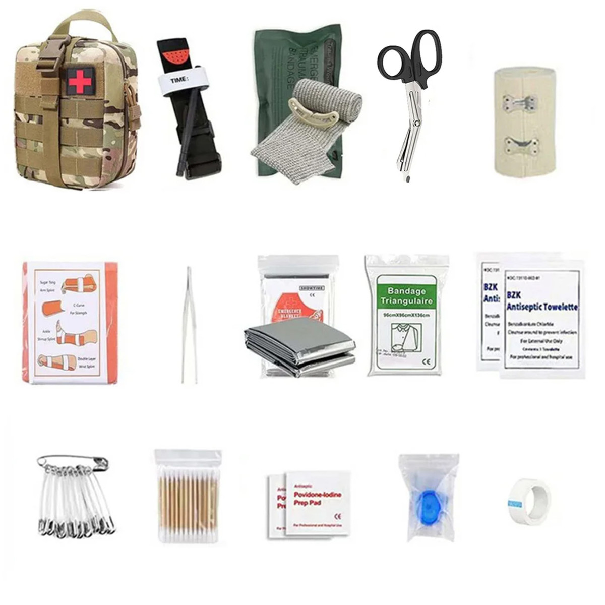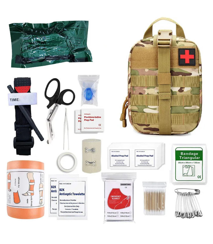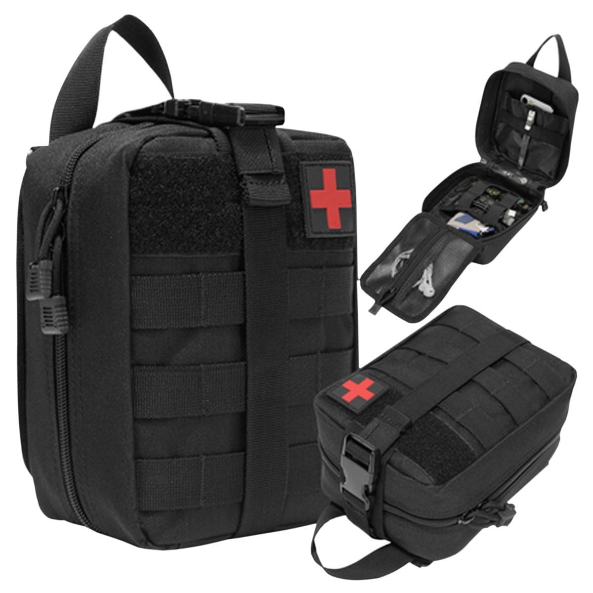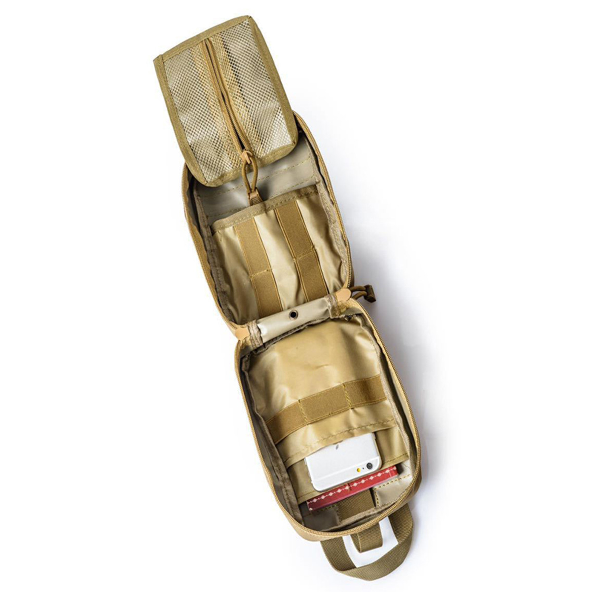 Pirmās palīdzības komplekts, kas paredzēts militāriem un izdzīvošanas vajadzībām, ir izgatavots no izturīga un ūdensnecaurlaidīga Cordura 600D materiāla, kas ir izturīgs pret nolietojumu un mitrumu.