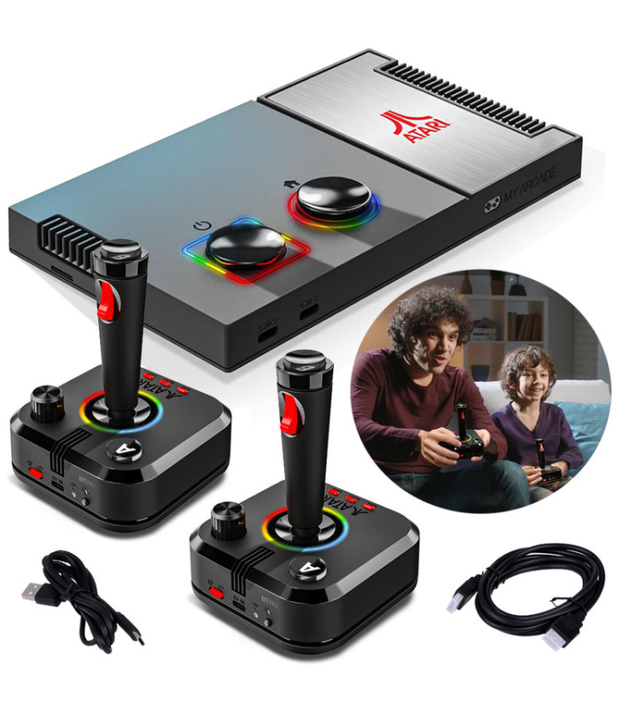 Divi bezvadu 2.4 GHz joysticki ir izstrādāti klasikas faniem, saglabājot oriģinālo Atari kontrolleru garu. Papildus, iebūvētās paletes ļauj spēlēt ikoniskus nosaukumus, piemēram, Breakout® vai Warlords®, nodrošinot autentiskas spēļu pieredzes.