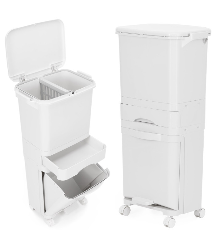 praktiska un ērta atkritumu šķirošanas tvertne ikdienas lietošanai mājās, birojā vai saimniecības telpā. šī atkritumu tvertne palīdz vienkārši un pārskatāmi šķirot dažādu veidu atkritumus, vienlaikus ietaupot vietu.
