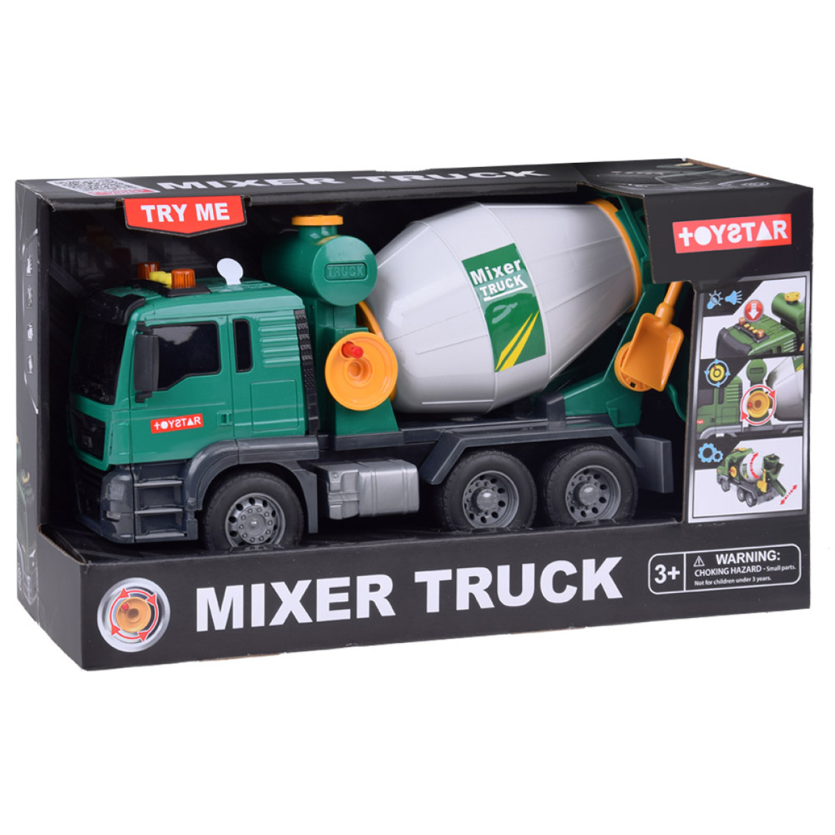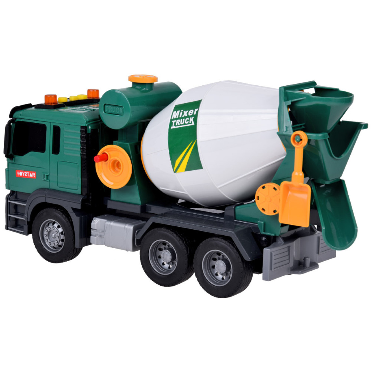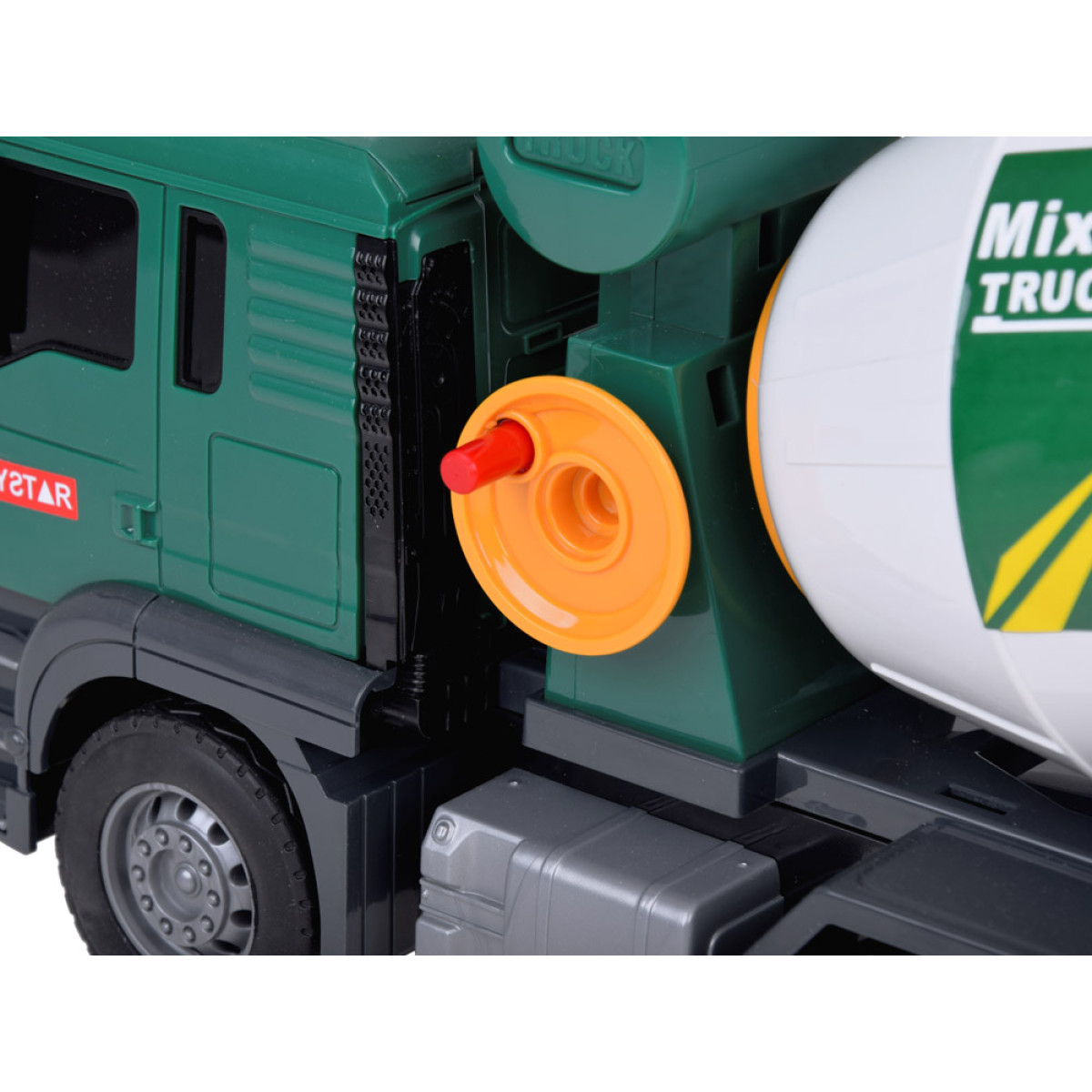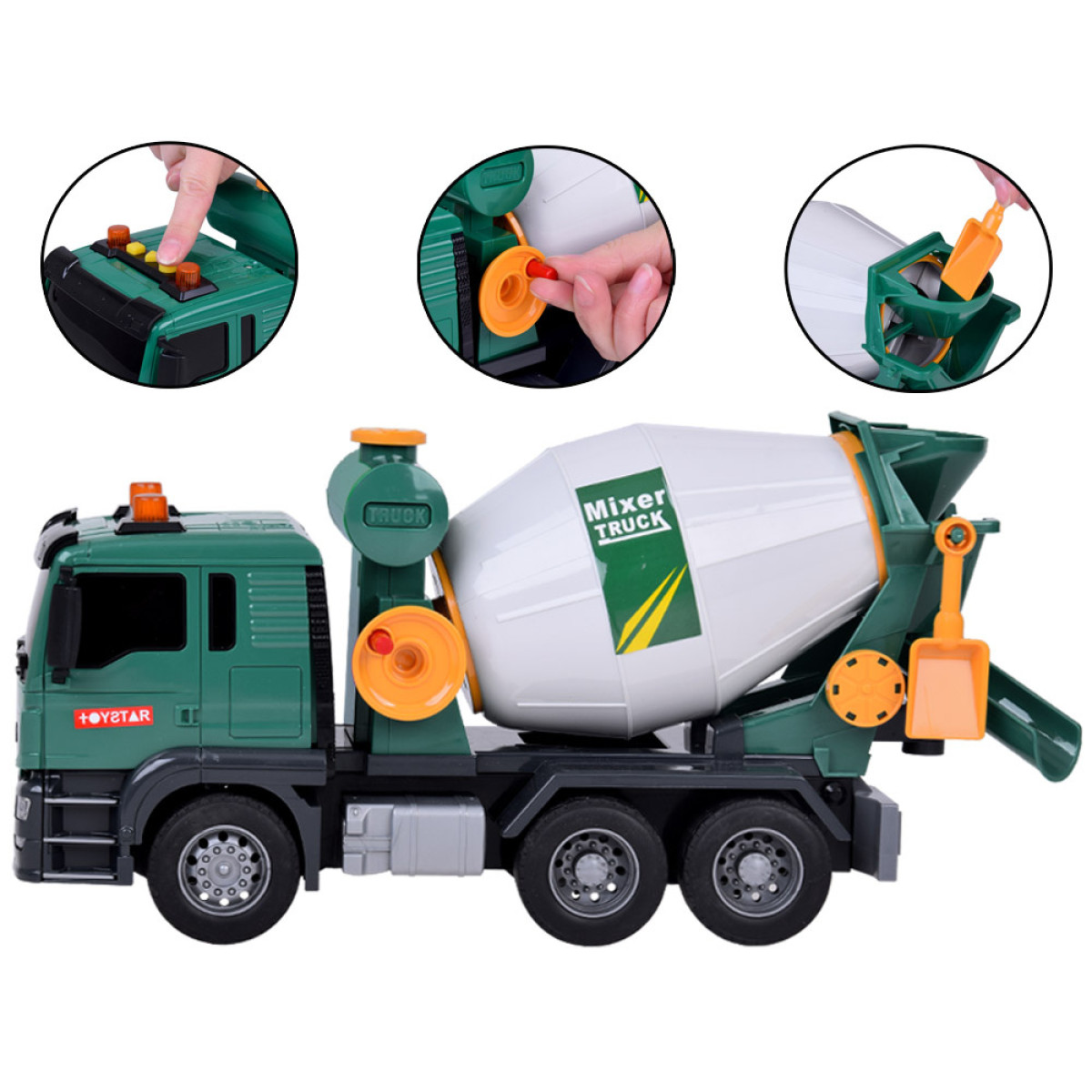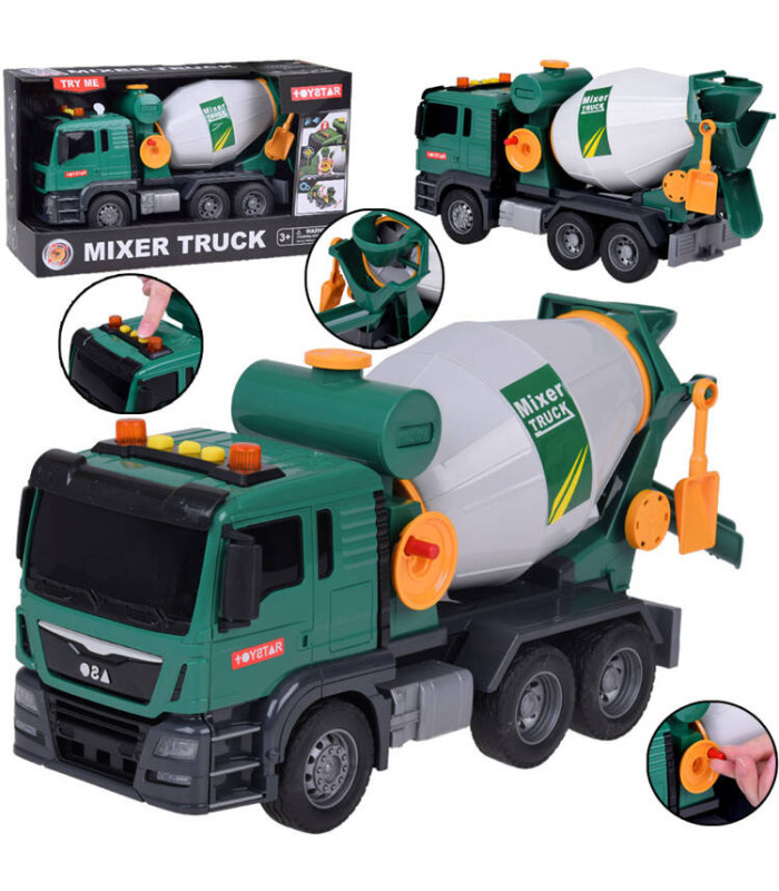 Zaļā betoniarka ir ideāla rotaļlieta maziem būvniecības transportlīdzekļu cienītājiem. Tā ir aprīkota ar skaņas efektiem un kustīgiem elementiem, kas piešķir reālisma katrai spēlei. Betoniarkas bungas var griezt, imitējot betona sajaukšanu, un funkcionālais piltuve ļauj "izliet" maisījumu.