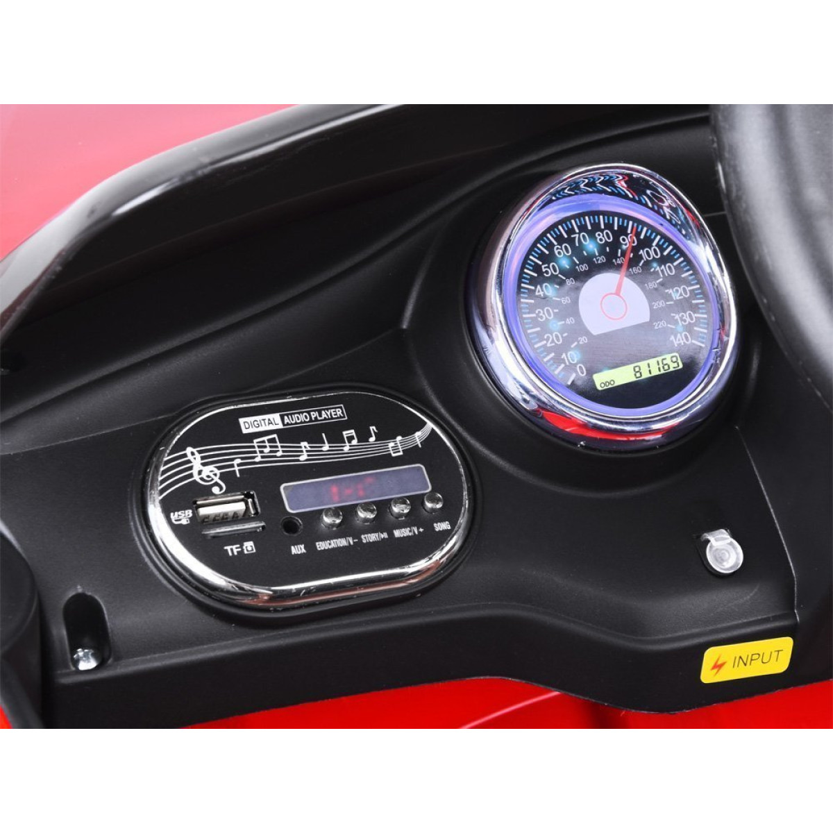 Sportiskais auto ar vienmērīgu startu un apstāšanos nodrošina 100% komfortablu braukšanu. Automašīnai ir divi spēcīgi motori 2 x 12V 16000RPM un 2 x 6V 4,5Ah želejas akumulatori, atslēgas un tālvadības pults vecākiem.