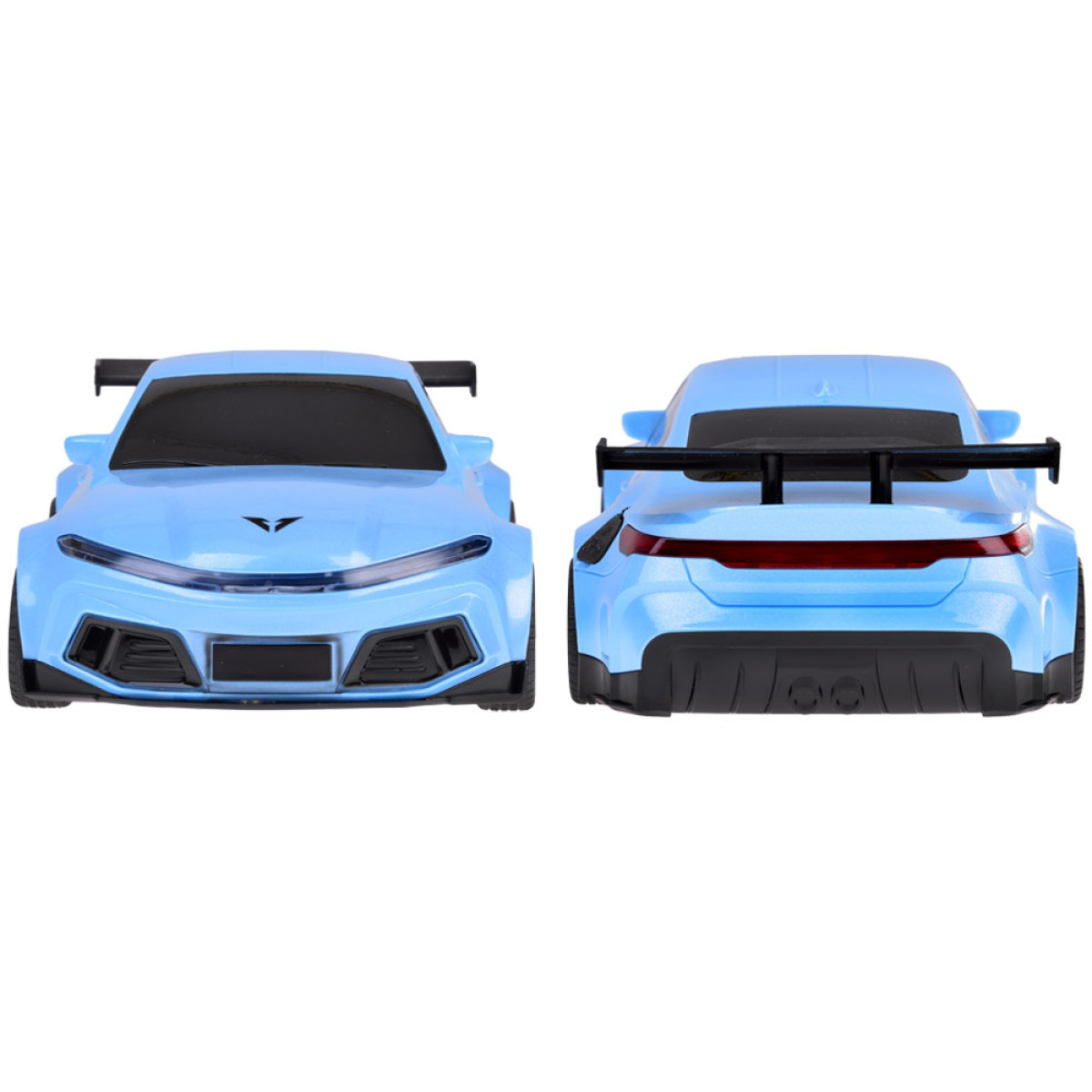 Elektriskā sacīkšu automašīna ar skaistu zilu krāsu, ko kontrolē ar tālvadības pulti