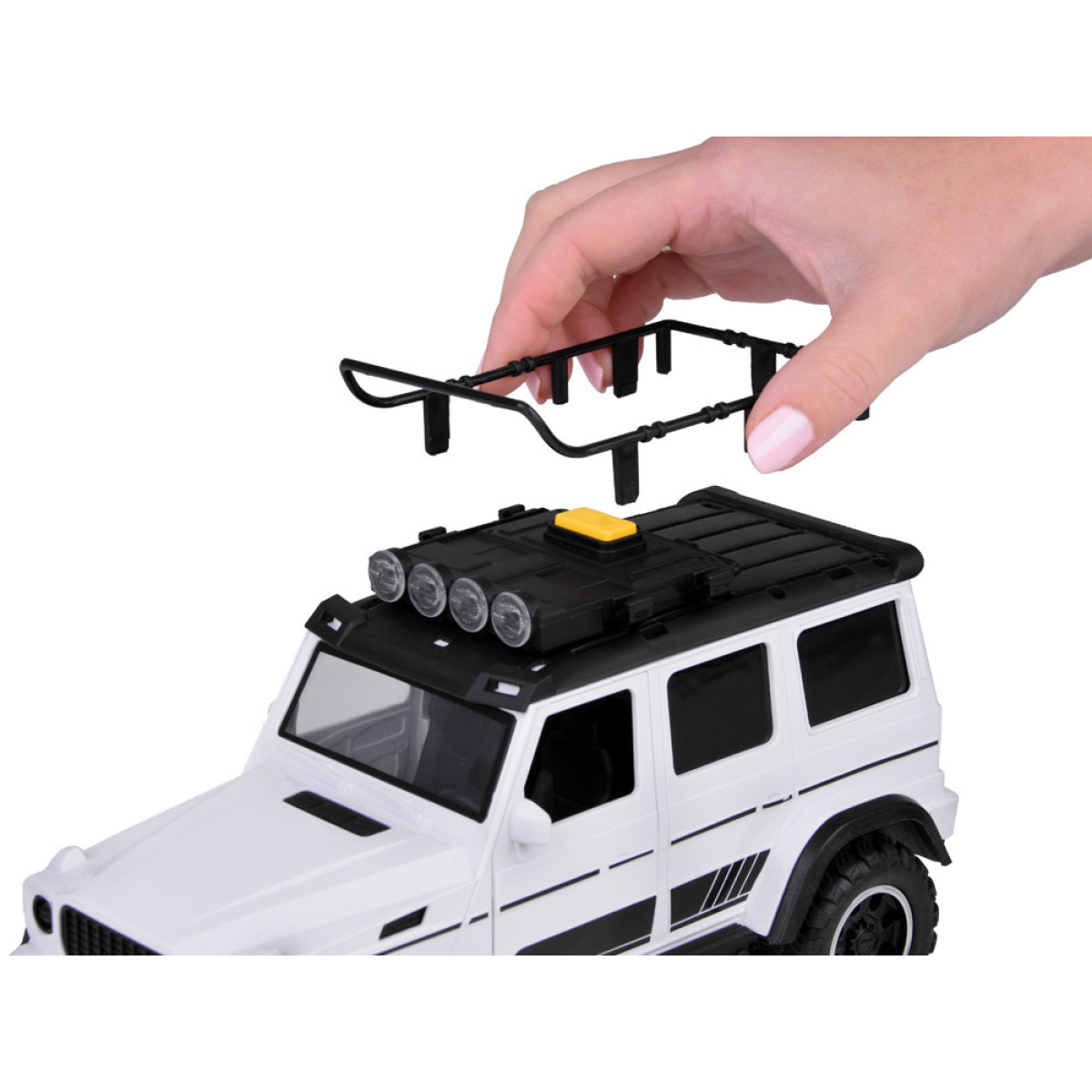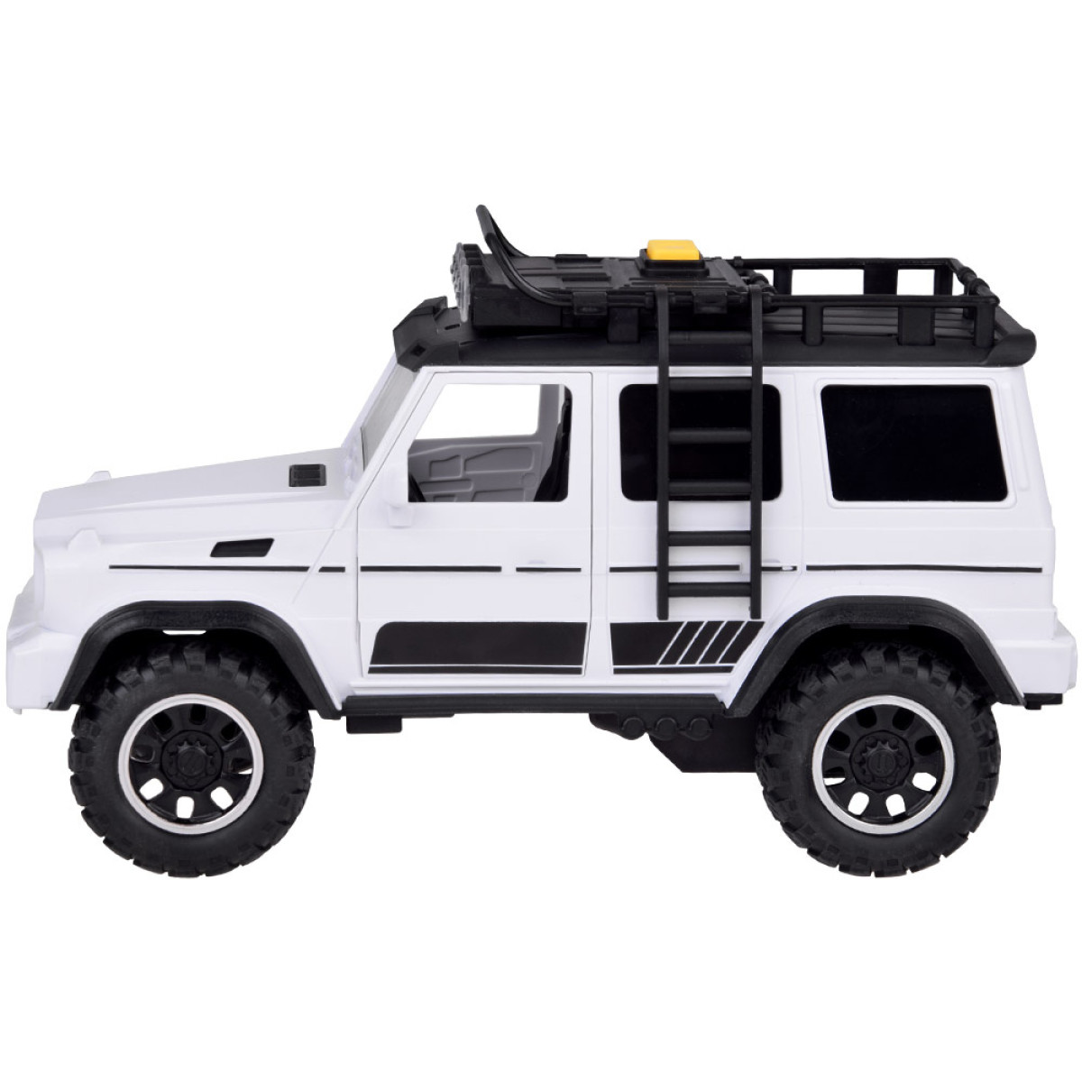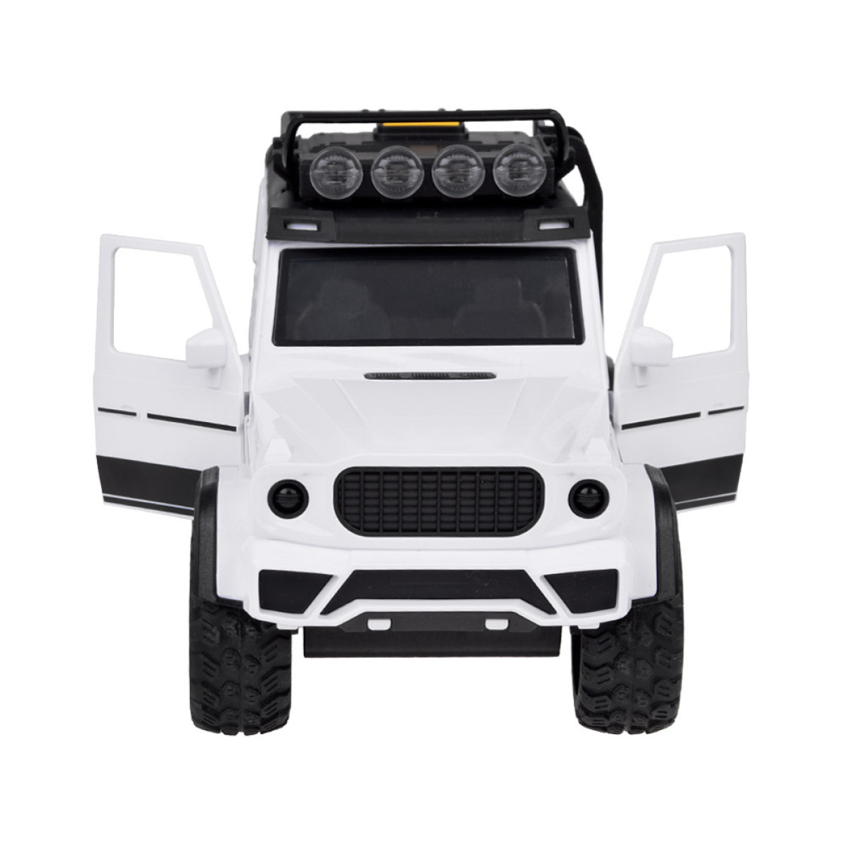 Šī automašīna ir ideāli piemērota jebkuram mazajam autovadītājam. Tā ir rūpīgi un efektīgi izstrādāta. Balta plastmasas korpusa krāsa izskatās lieliski. Uz jumta ir bagāžnieks un lieli lukturi, kas apgaismo ceļu. Automašīnai ir atveramas priekšējās durvis, skaņas efekti un mirgojošas gaismas uz jumta.