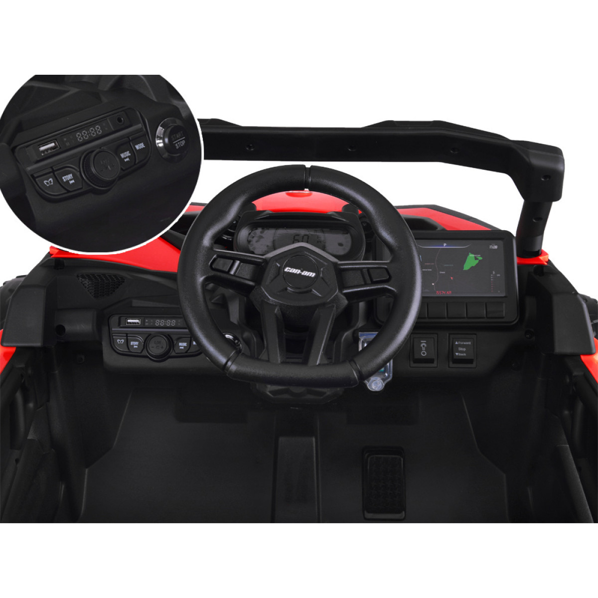 Uz vadības paneļa ir pogas, lai ieslēgtu auto, apgaismojumu, ātruma režīmu, braukšanas virzienu, mūziku un tās vadību. Ir arī MP3, USB ieejas, lai pieslēgtu savu mūzikas aprīkojumu un baudītu mīļākās dziesmas vai pasakas brauciena laikā. Ekrānā var redzēt akumulatora stāvokli, un panelī ir arī navigācijas imitācija.