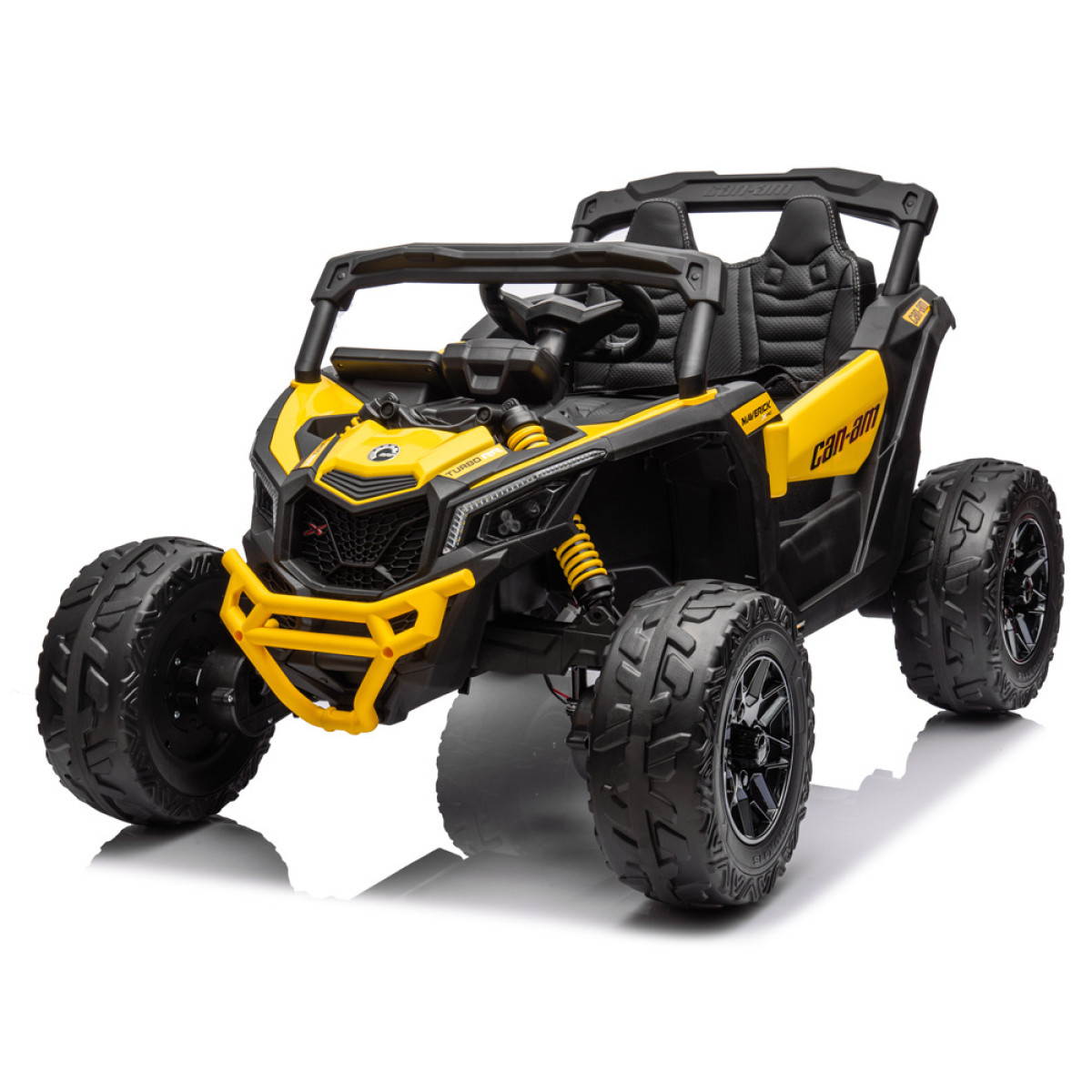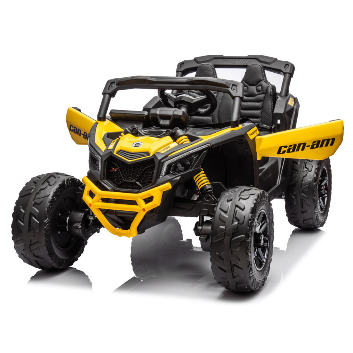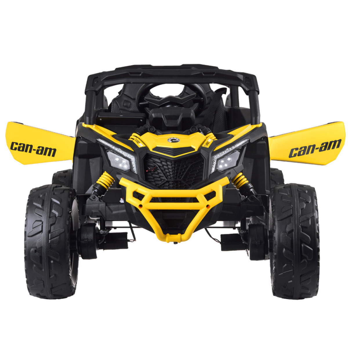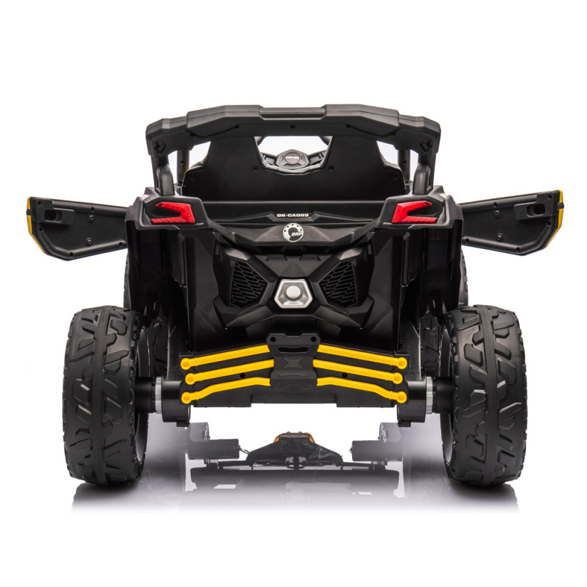 Auto ir atveramas durvis, ērts sēdeklis ar ekoloģisko ādas pārklājumu un spēcīga amortizācija. Drošību nodrošina piecu punktu drošības jostas. Auto ir 4x4 piedziņa ar EVA materiāla riteņiem un amortizatoriem priekšā un aizmugurē, kas nodrošina ērtu braukšanu pa zāli, asfaltu, bruģi vai cietām takām, kā arī pārvar nelīdzenumus dārzā vai meža takās.