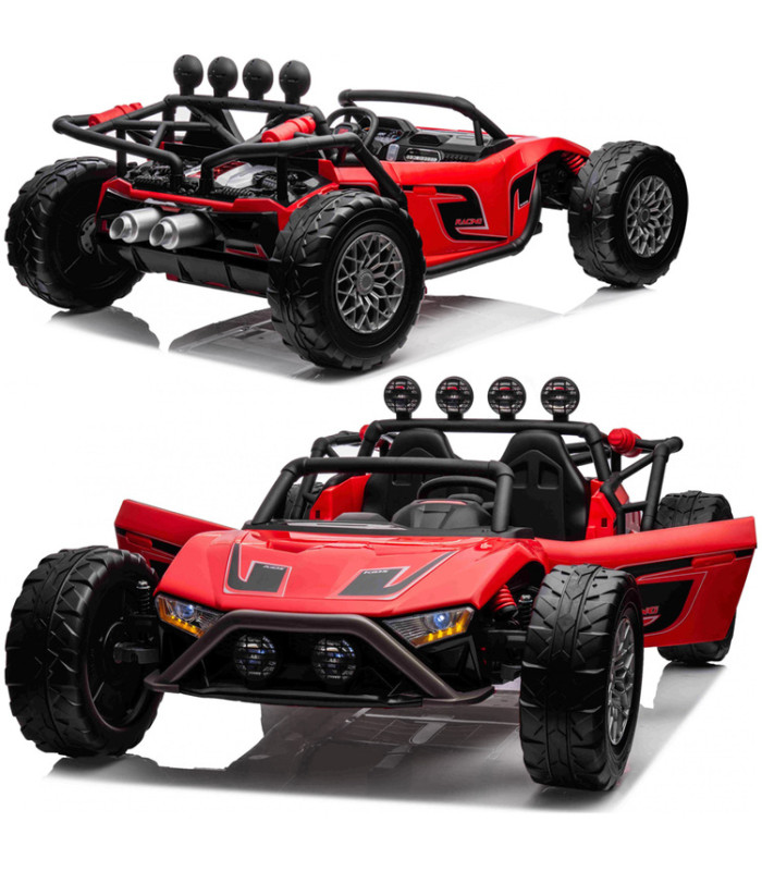 Elektriskais Buggy Racing ir divvietīgs transportlīdzeklis, kas ir ideāli piemērots jebkuram jaunajam vadītājam šajā sezonā. Sportiskais buggy piedāvā ērtu sēdekli un komfortablu piekari. Ar divām dzinējām, 2 x 24V 200W, un akumulatoru 24V/7Ah, šis transportlīdzeklis nodrošina aizraujošu braukšanu pa dažādiem reljefiem.
