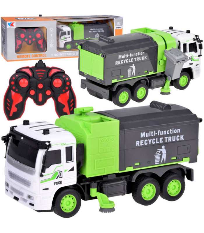 Attālinātais vadības pults: ļauj viegli vadīt transportlīdzekli. Rokas režīms: Transportlīdzekli var arī stumt, neprasot pulti vai baterijas. Celtne konteineriem: ļauj pacelt atkritumu konteineru.