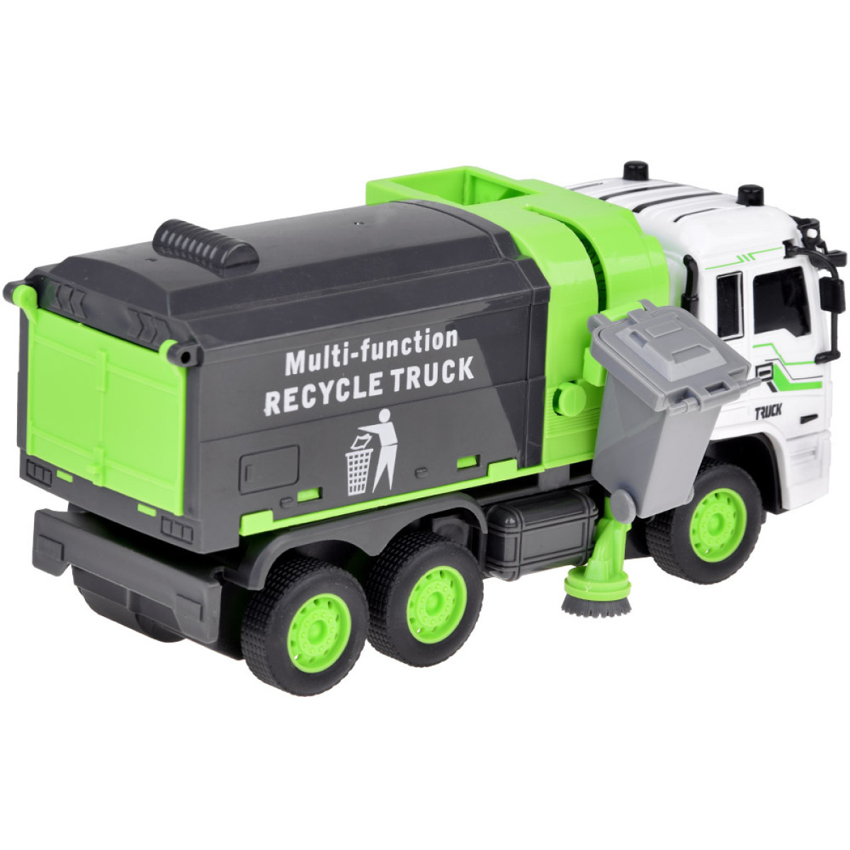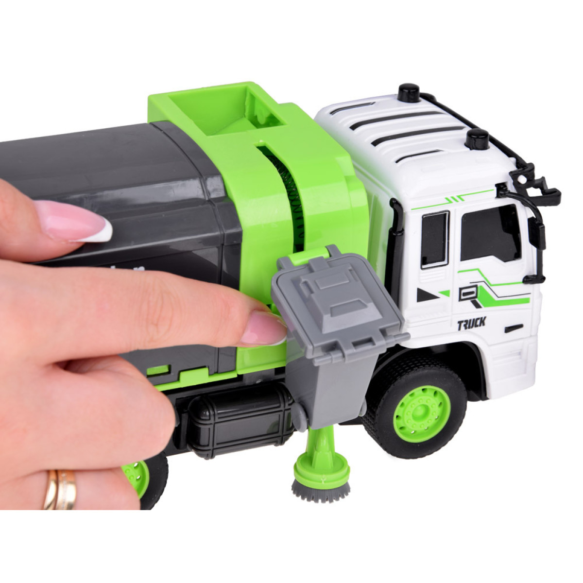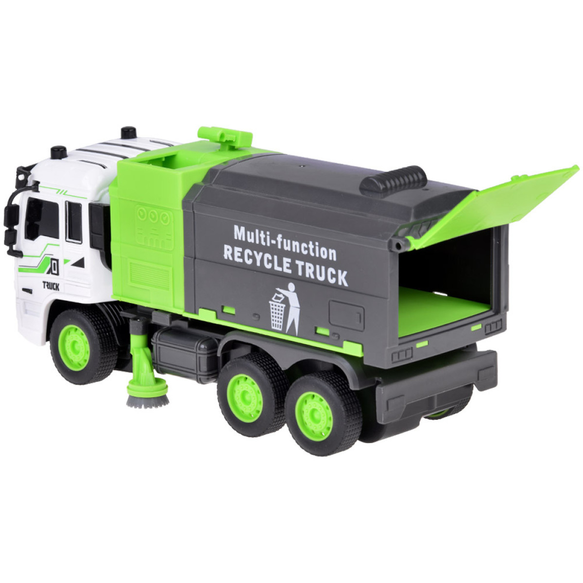Atkritumu mašīna ar celtni un atveramu aizmugures vāku ir lieliska rotaļlieta katram mazam kārtības mīļotājam, kas vēlas rūpēties par tīrību savā apkārtnē. Transportlīdzeklis ir aprīkots ar gaismas efektiem, un tā kustīgās daļas, piemēram, celtne konteineriem un atveramais vāks, padara spēli vēl reālistiskāku. Izgatavots no plastmasas, nodrošina ilgu kalpošanu un izturību.