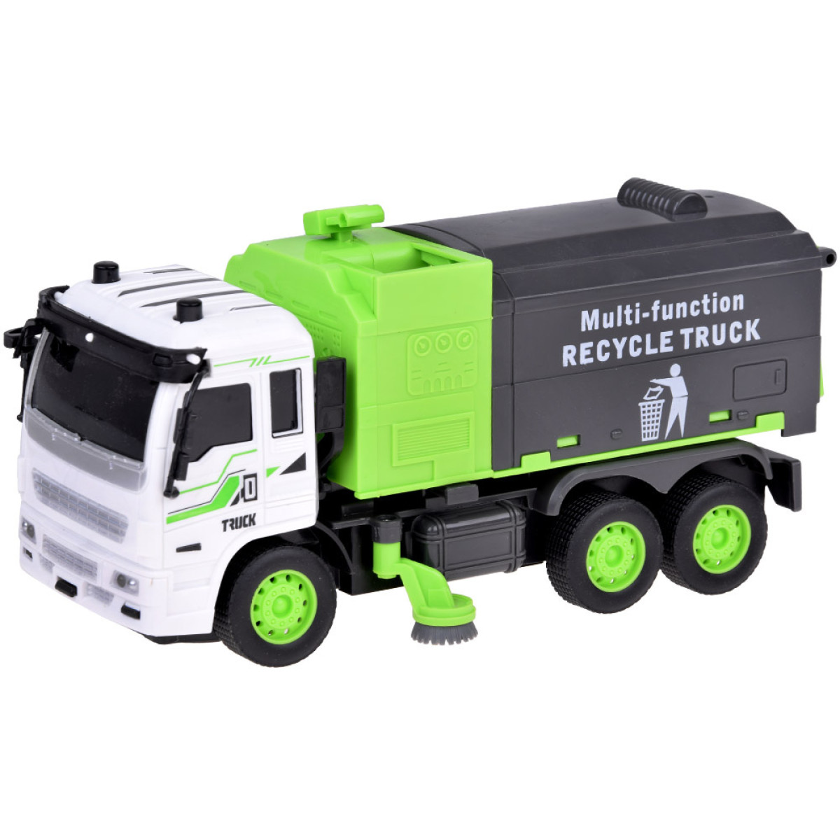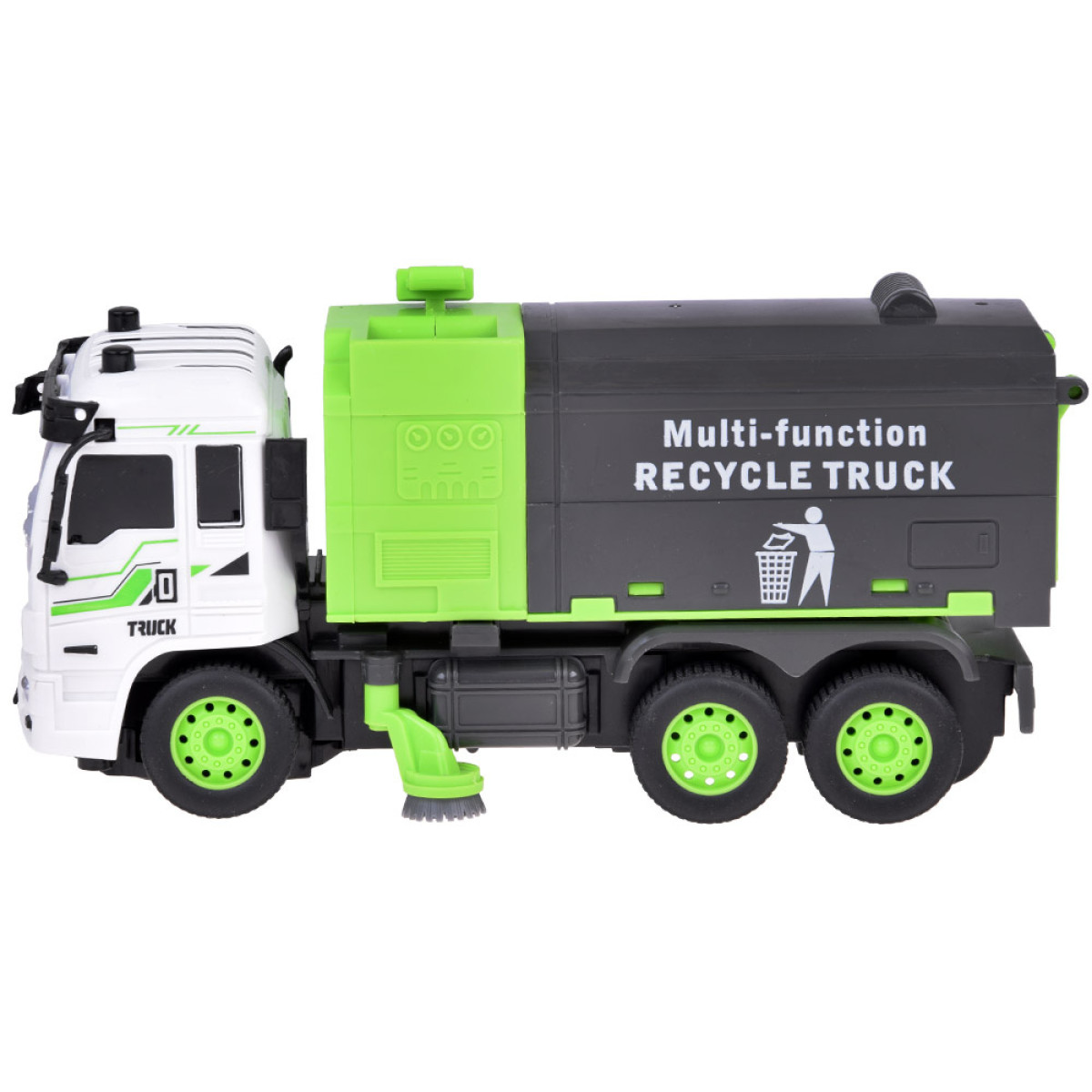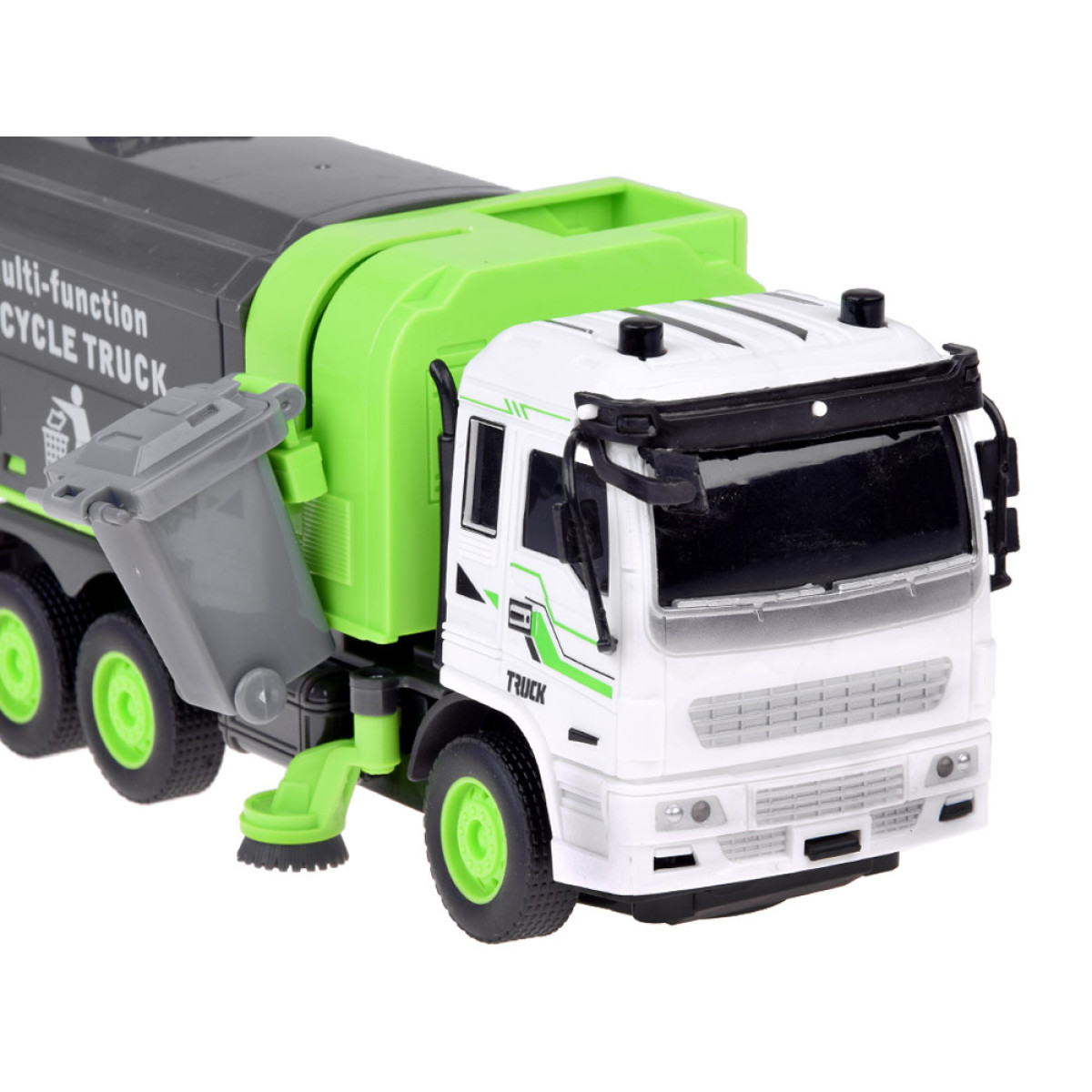 Atkritumu mašīna ar celtni un atveramu aizmugures vāku ir lieliska rotaļlieta katram mazam kārtības mīļotājam, kas vēlas rūpēties par tīrību savā apkārtnē. Transportlīdzeklis ir aprīkots ar gaismas efektiem, un tā kustīgās daļas, piemēram, celtne konteineriem un atveramais vāks, padara spēli vēl reālistiskāku. Izgatavots no plastmasas, nodrošina ilgu kalpošanu un izturību.