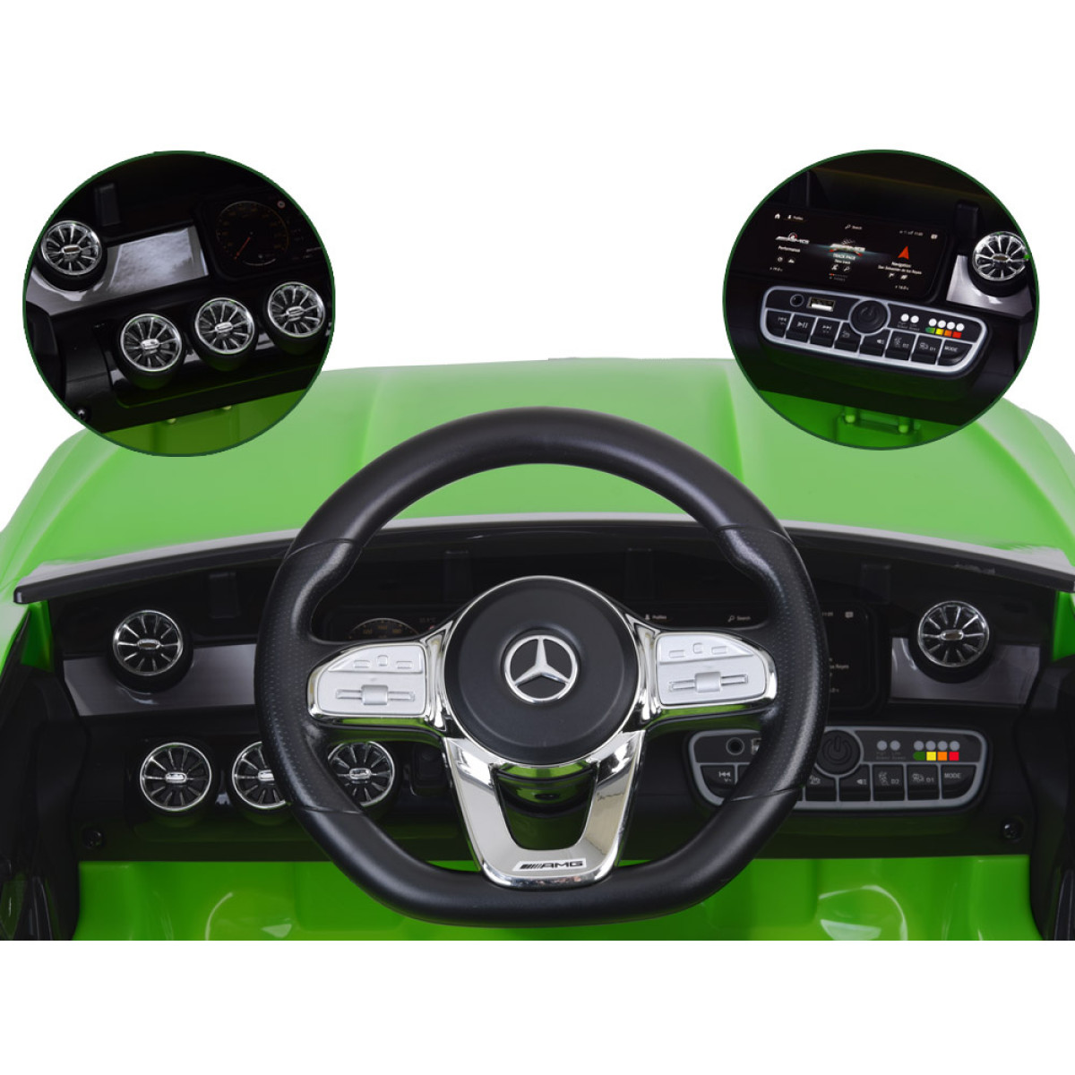 Auto ir aprīkots ar atveramām durvīm un ērtiem sēdekļiem ar eko ādas apdari un drosības jostu. Komfortam pievienoti EVA putu riteņi un amortizatori. Elektriskā bremze darbojas, kad atbrīvo gāzes pedāli. Papildus tam, Mercedes nodrošina šūpošanās efektu.