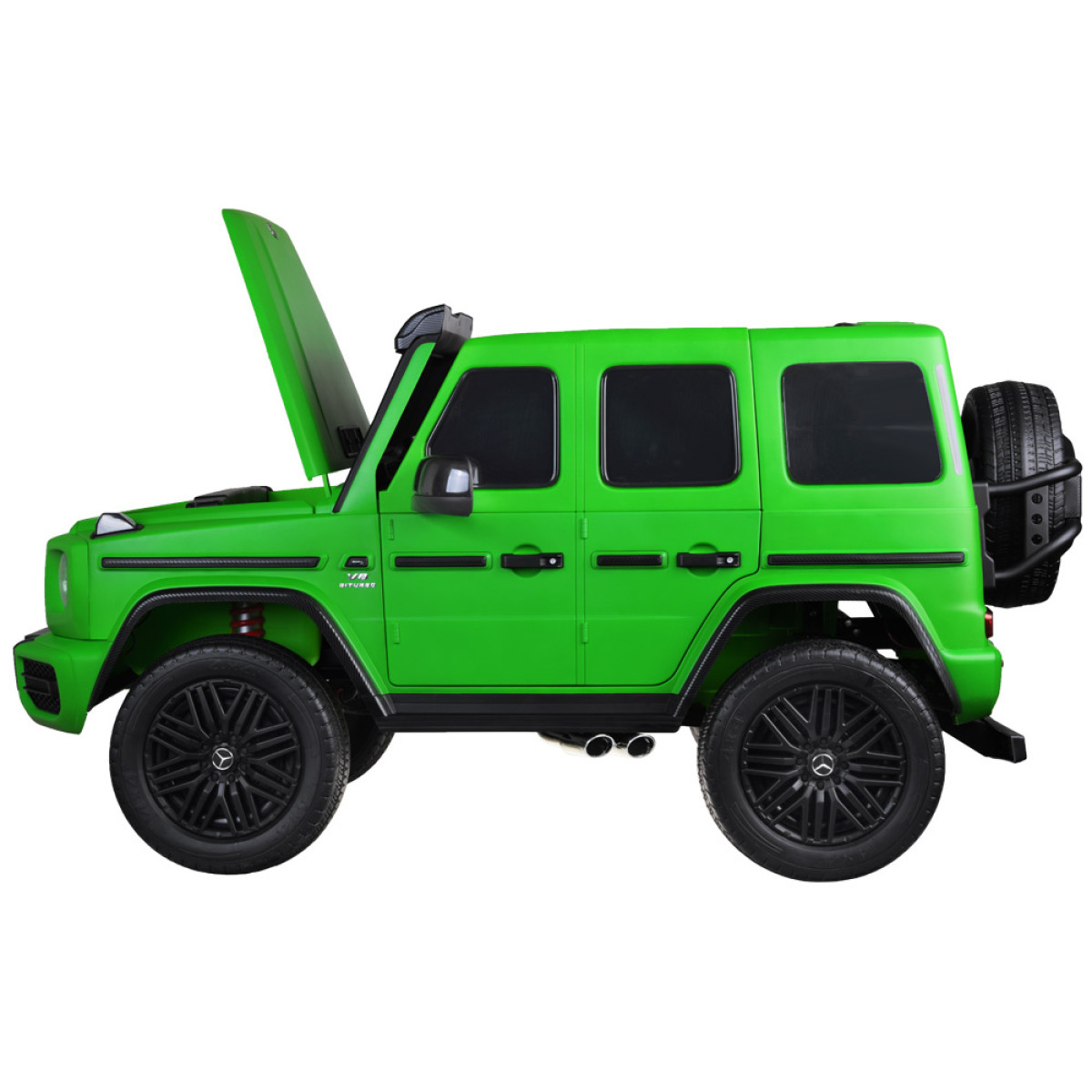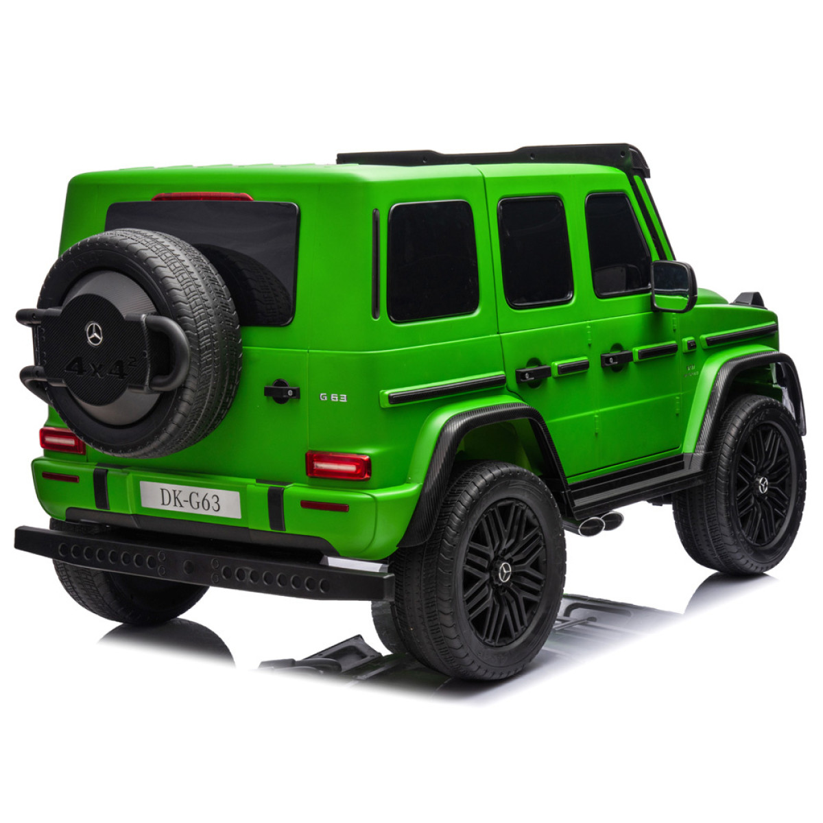 grezns elektriskais auto bērniem mercedes benz g63 amg ir lieliska izvēle mazajiem auto cienītājiem. šis divvietīgais bērnu auto ir veidots kā uzticama ikoniskā modeļa kopija un nodrošina reālistisku braukšanas sajūtu, augstu komfortu un drošību. modelim ir 4x4 piedziņa, skārienpanelis, 4 jaudīgi motori 24v 200w, ietilpīgs 24v 7ah akumulators un 2,4 ghz tālvadības pults vecākiem.